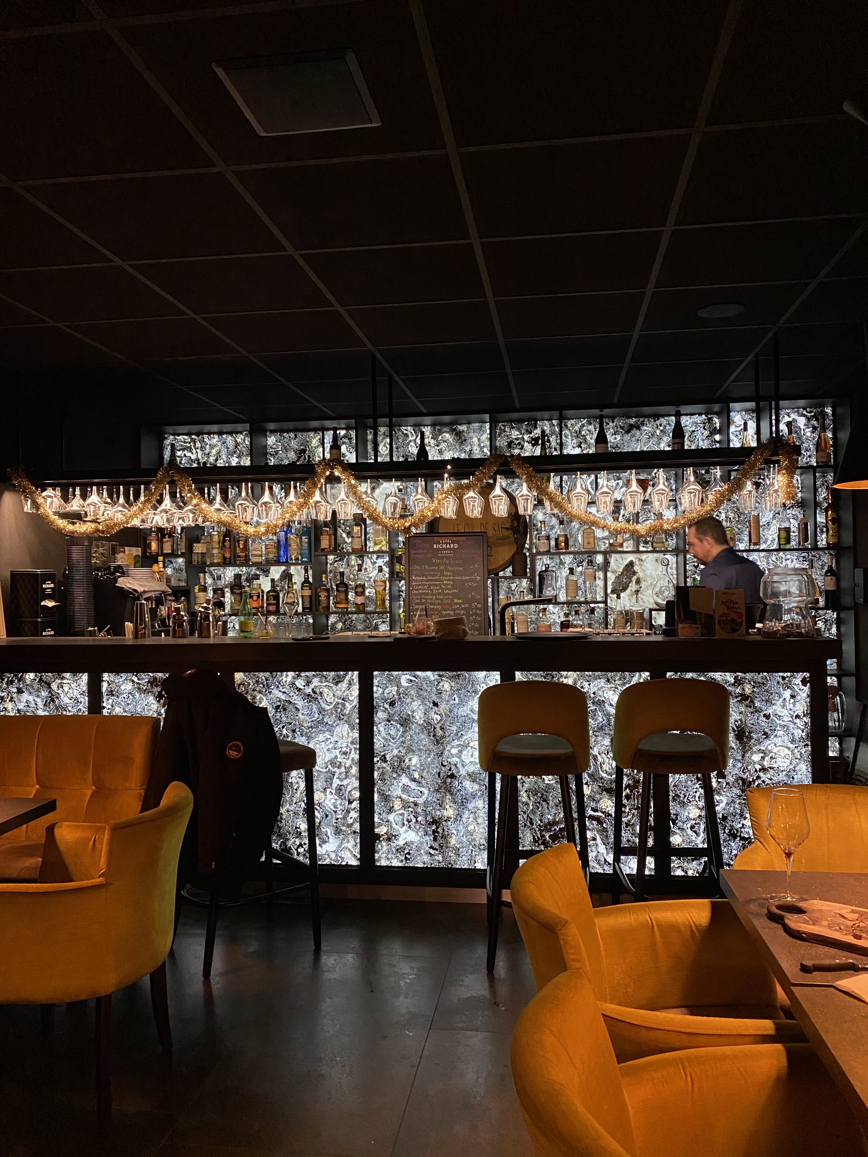 Ambiance cosy et bien décoré, personnel au top, planches à partager magnifique (produits locaux frais) et choix de vins/alcools de qualité. Je reviendrai sans hésitation 🤩. Merci !