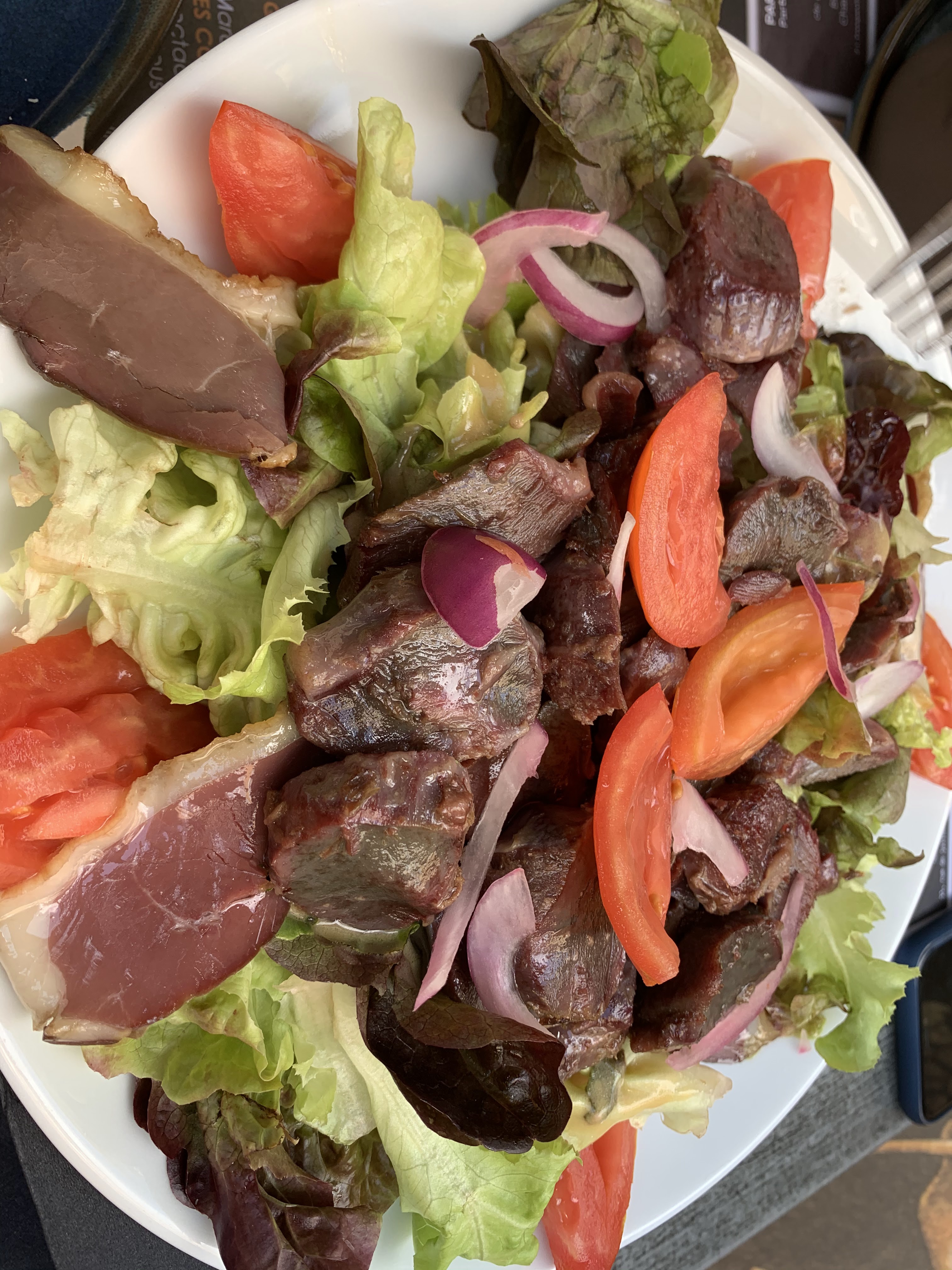 Est allé Pour manger un menu typiquement français, mais le A partir de 14h30 je ne sais plus Il servait... alors nous avons commandé en terrasse une salade avec de la viande et le fameux canard du Zone. Ce n'était pas mal du tout, vraiment. Ville Bien pour En marchant, ça a l'air rapide.
