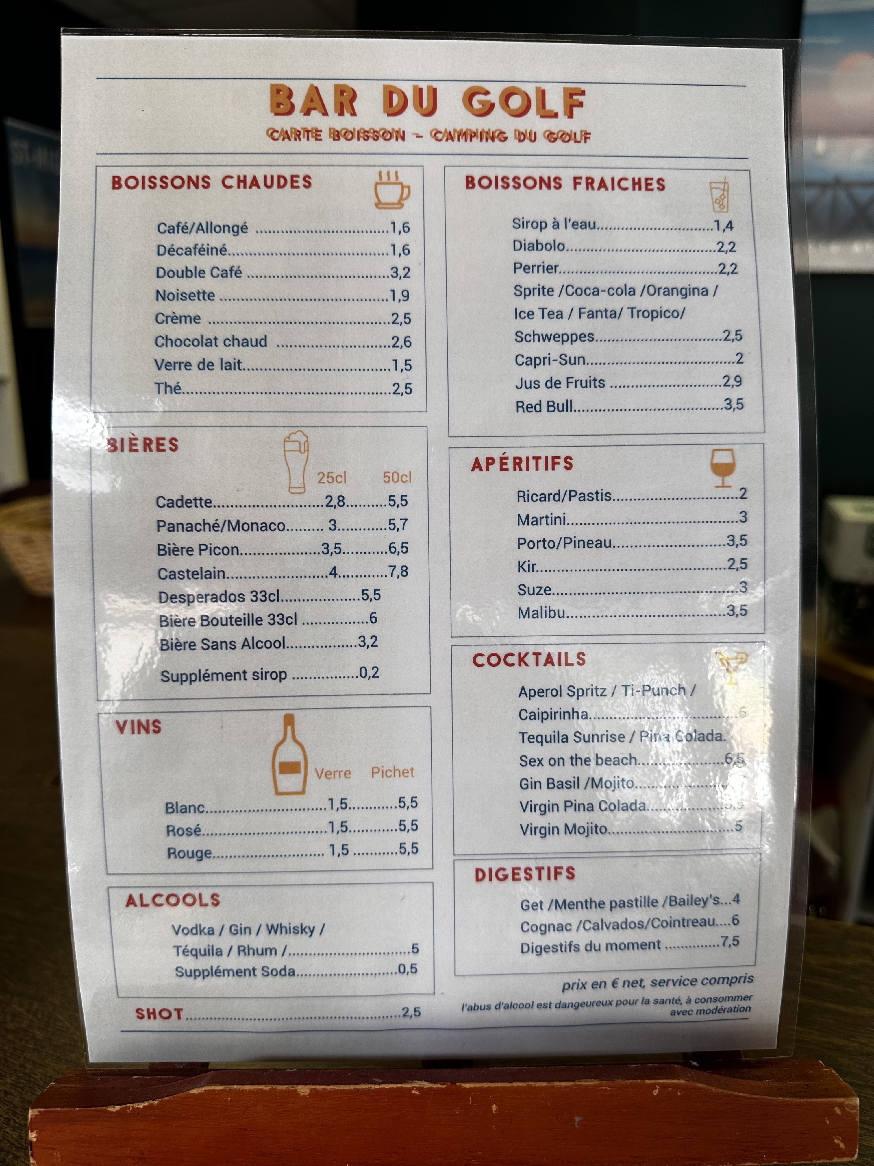 Le bar du camping est un véritable joyau caché ! L'atmosphère y est détendue et accueillante, et le personnel toujours souriant et attentionné. Les boissons sont délicieuses, avec de très bonne bières. L'endroit est parfait pour se détendre après une journée bien remplie en plein air, et les soirées animées et les événements spéciaux ajoutent une touche de divertissement supplémentaire. Que vous soyez en train de siroter un verre sur la terrasse ensoleillée ou de participer à un quiz animé, ce bar de camping est l'endroit idéal pour créer des souvenirs mémorables avec vos proches. Mention spéciale au patron équiper de son mullet et d'un sourire plus que ravageur !