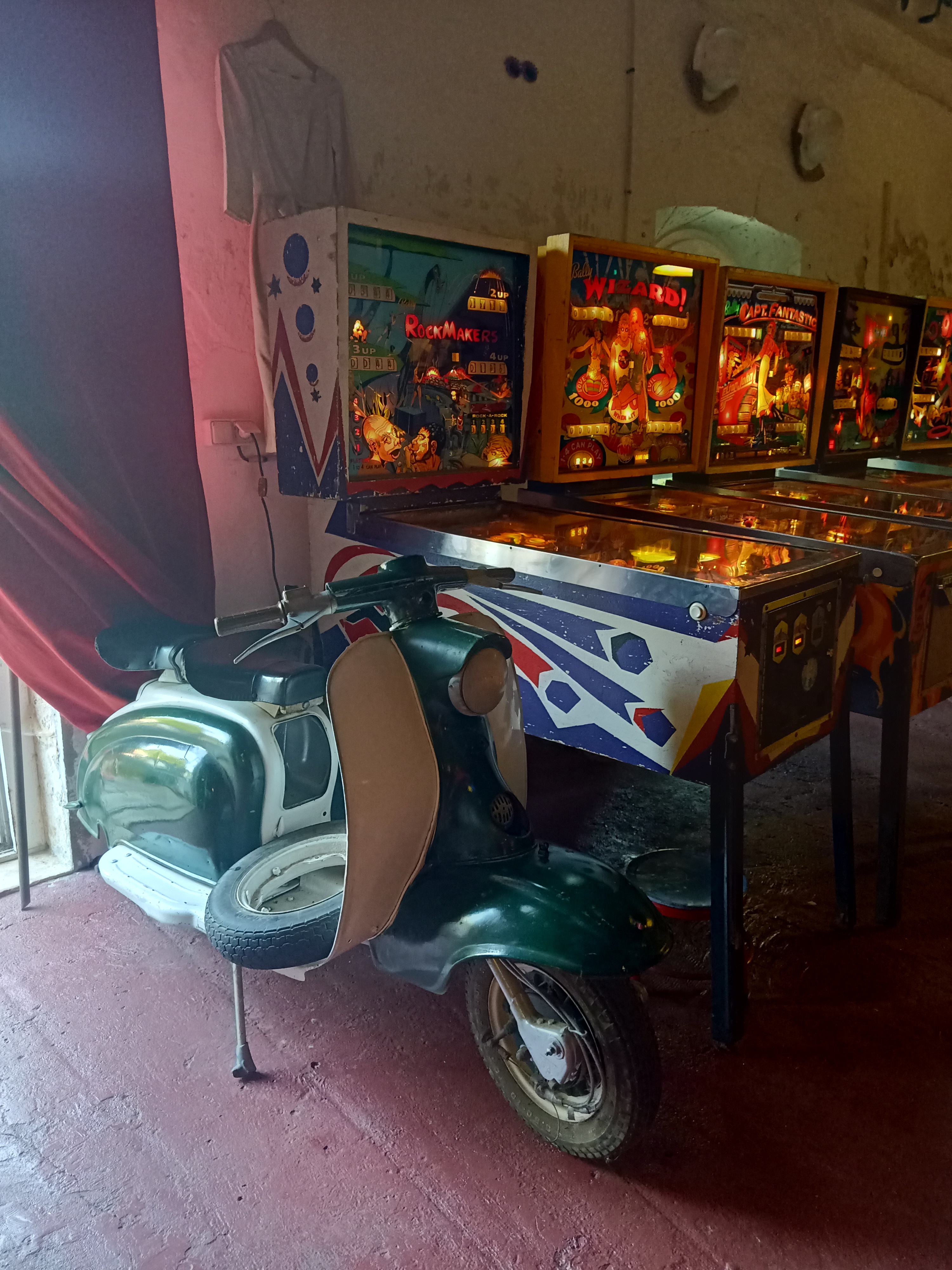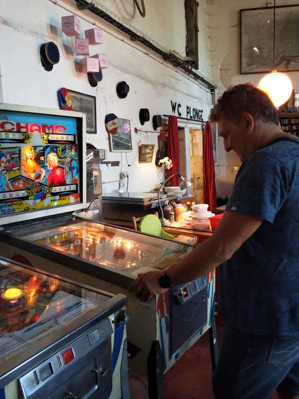 Lieu incroyable, hors du temps : une guinguette avec des vieux flippers. J’adore !