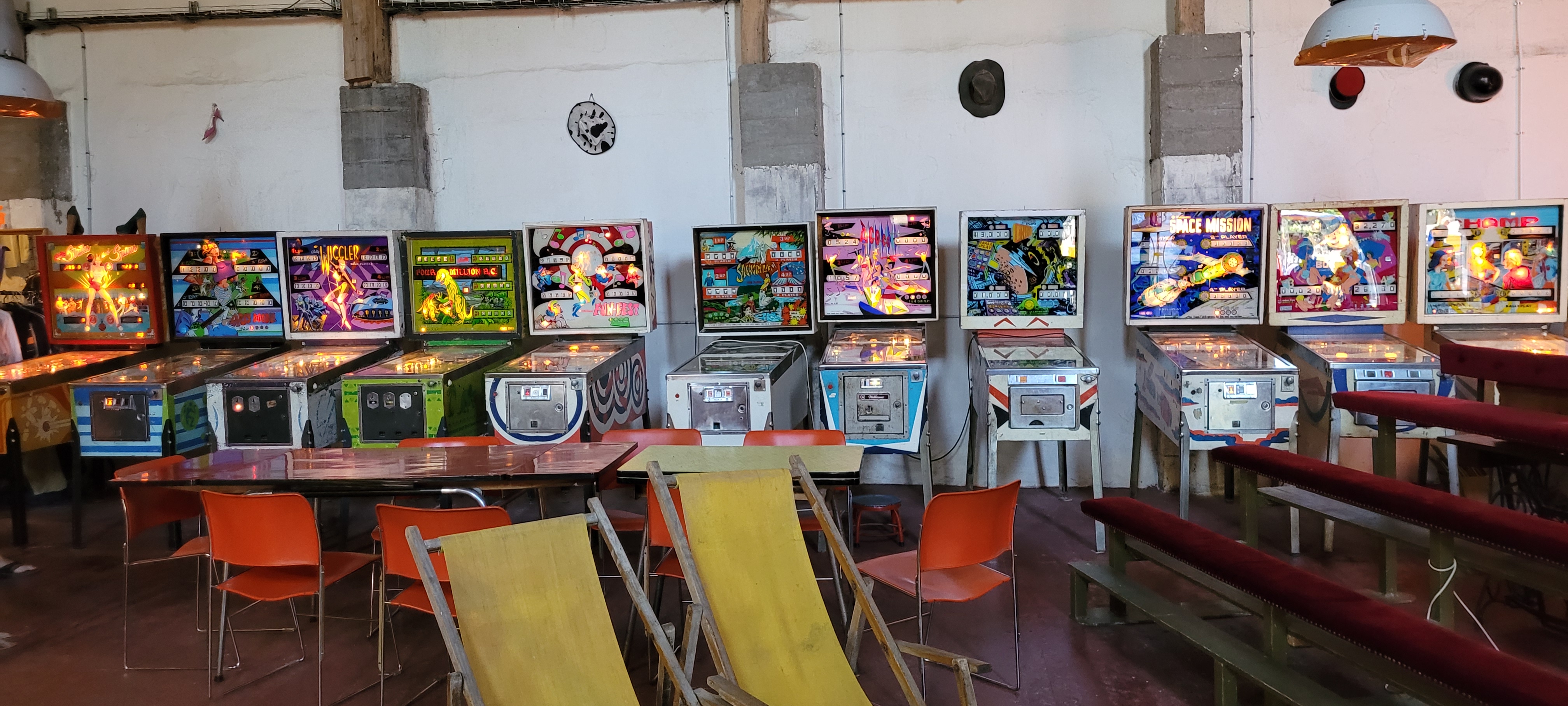 Un voyage dans le temps dans cette grande grange. Prenez un verre, ou quelque chose à manger et récupérez des jetons pour jouer à ces superbes machines nostalgiques, vous aussi pourriez devenir un magicien du flipper. Nous n'avions pas de nourriture, nous ne pouvons donc pas faire de commentaire