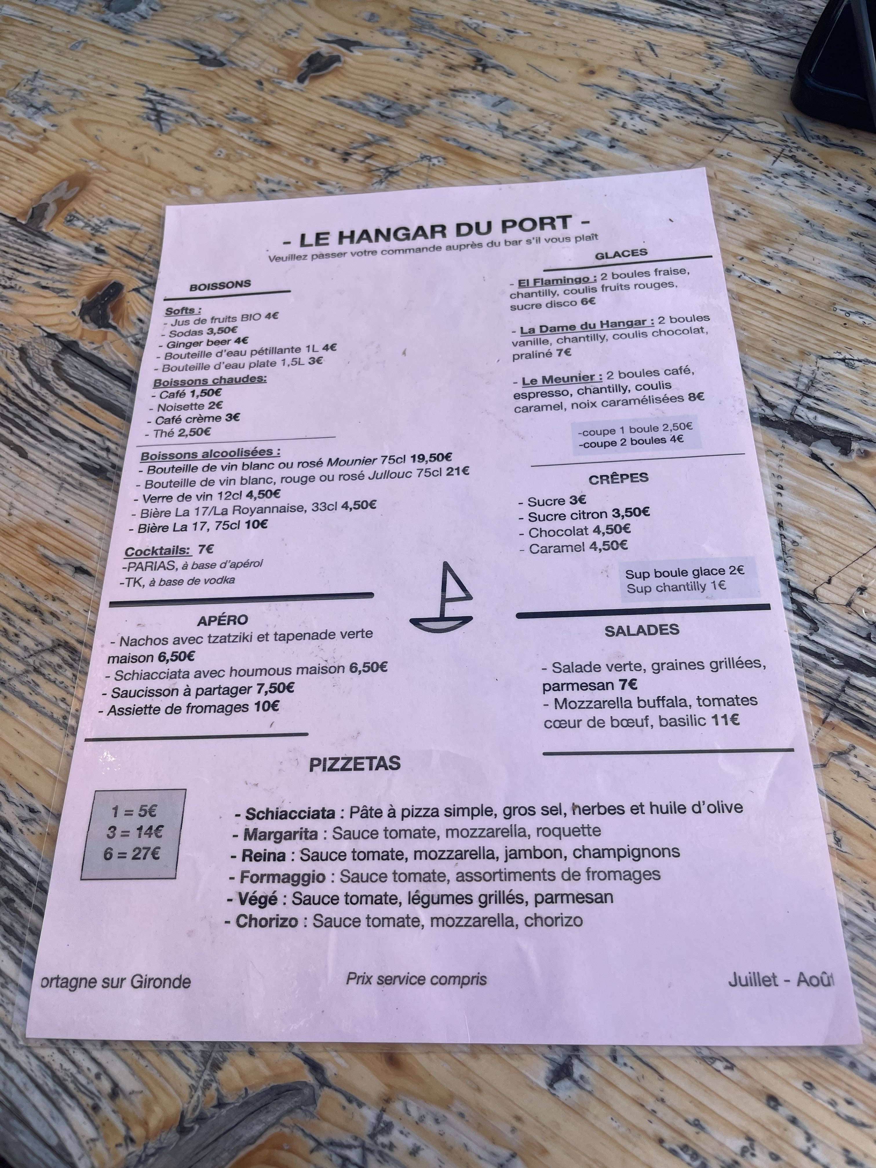 Mortagne-sur-Gironde est une commune pittoresque située en Charente-Maritime, dans la région Nouvelle-Aquitaine en France. Nous voulions découvrir un peu plus de la région et nous sommes allés au port dans le bas de la ville. Autour de la marina vous trouverez des marchands d’arts et en vous dirigeant vers l’embouchure vous tombez sur un parc avec l’accueil touristique mais surtout le pop-up bar le Hangar du Port ! Charmant bar situé dans un ancien hangar, il abrite de vieux flippers, un ambiance rétro / hypster super sympa et un dj qui joue des 45tours à l’ancienne, trop belle expérience !! La ginguette dehors est hyper sympa et le staff aussi !