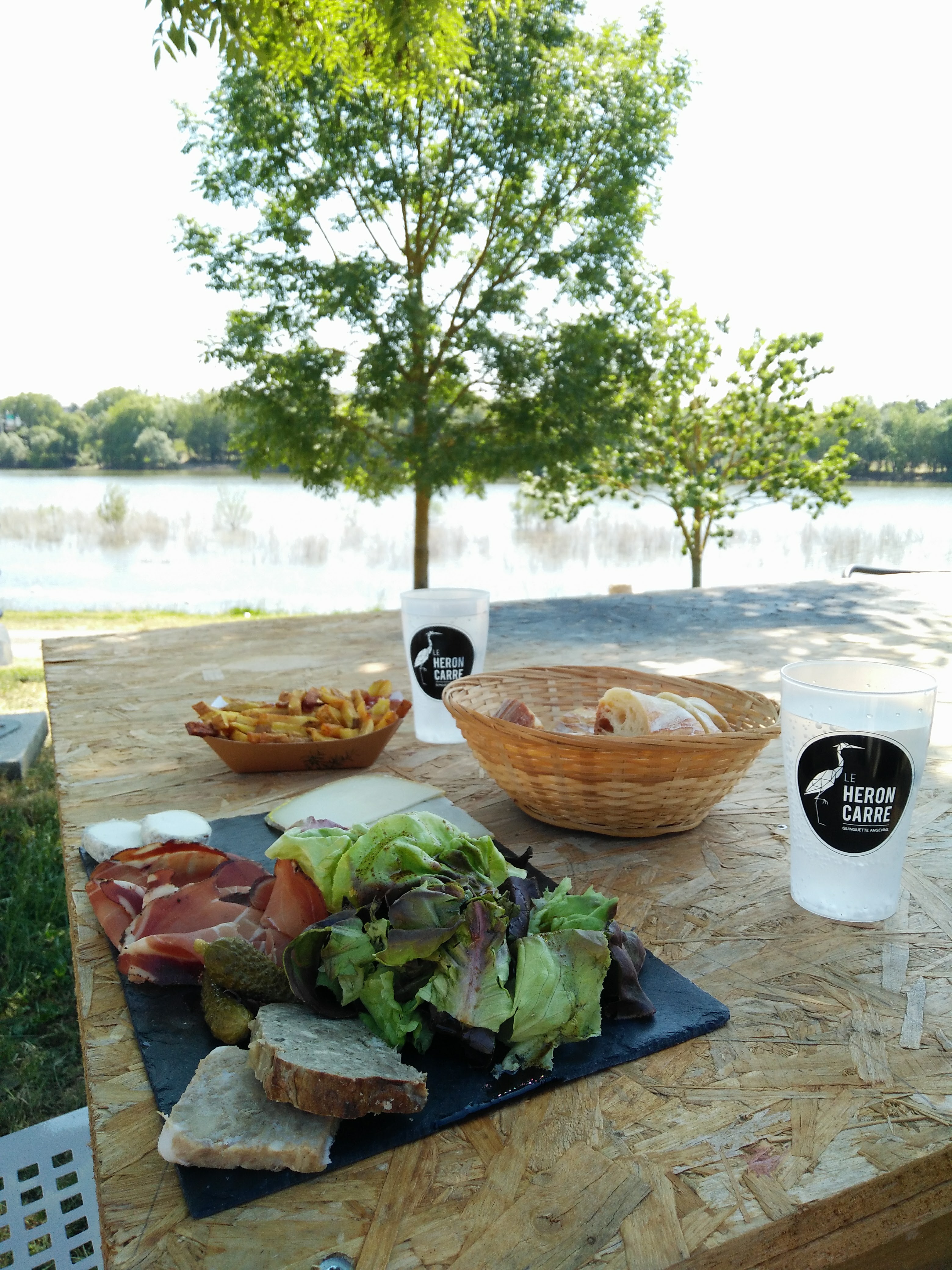 Superbe endroit , on mange au soleil, fish and chips, planches charcuteries ou fromage ou autre , au bord du lac de Maine