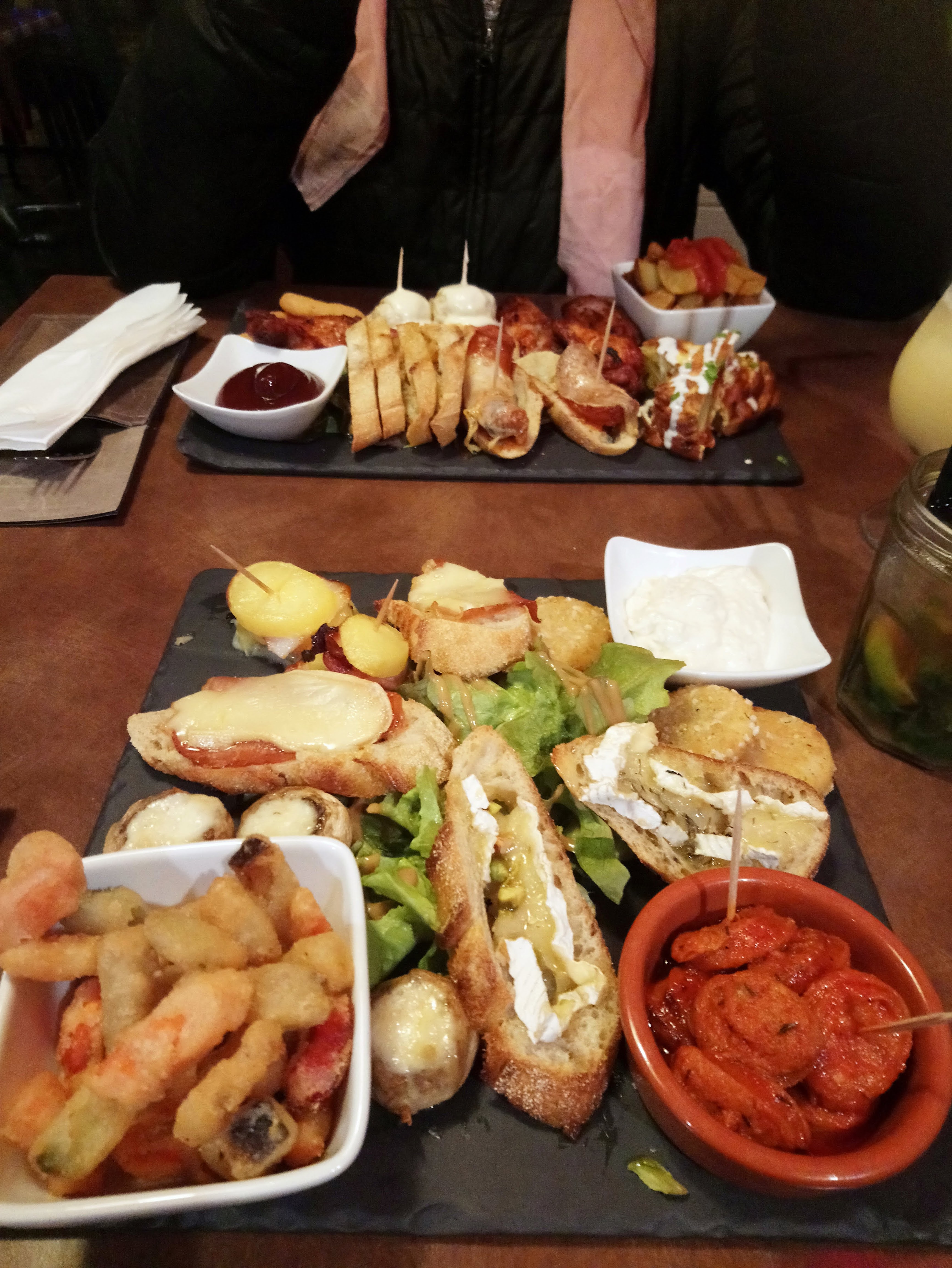 Tres bon bar a tapas Planche complète à 13 euro 50 Nombreux choix Adresse vivement recommandée