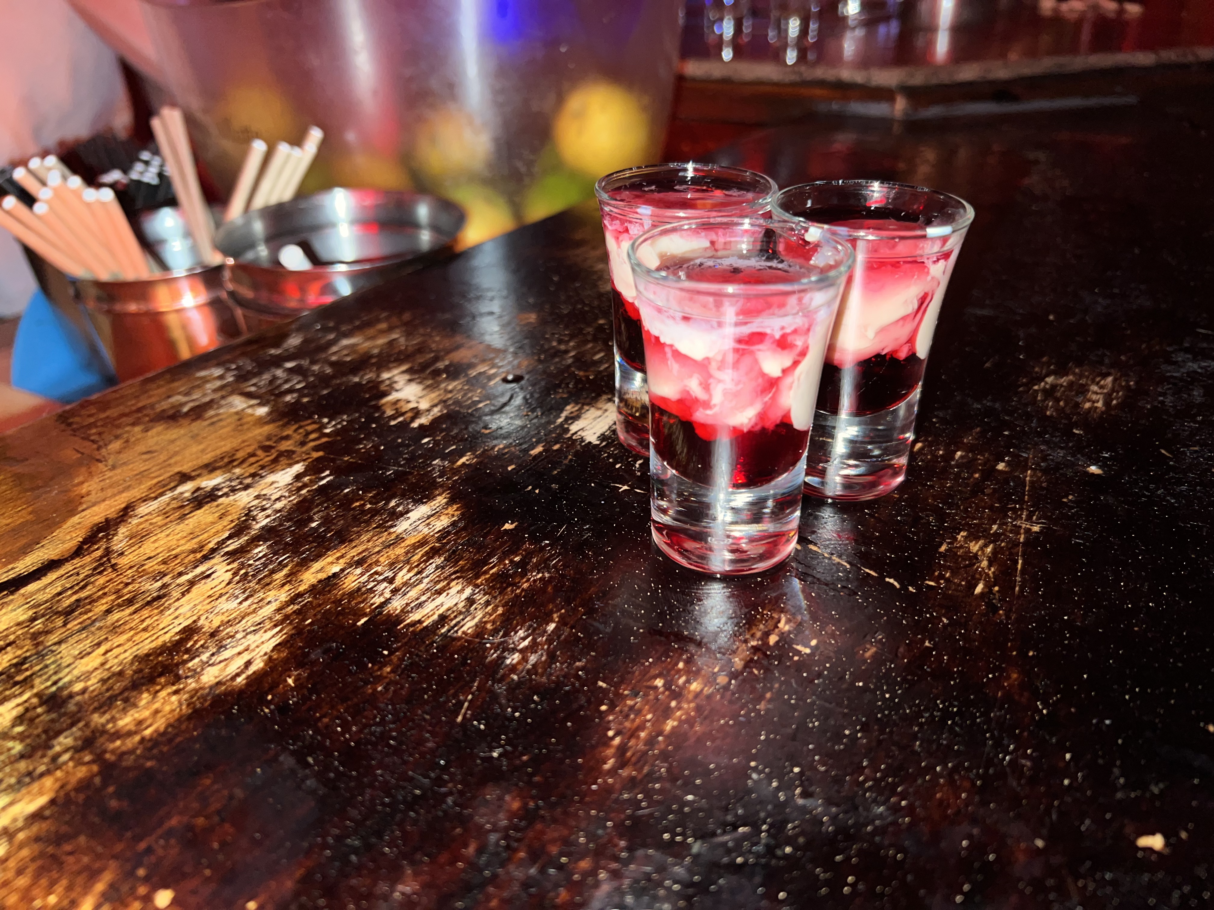 Bon bar à cocktail, une large gamme de shooters et de bonnes bières