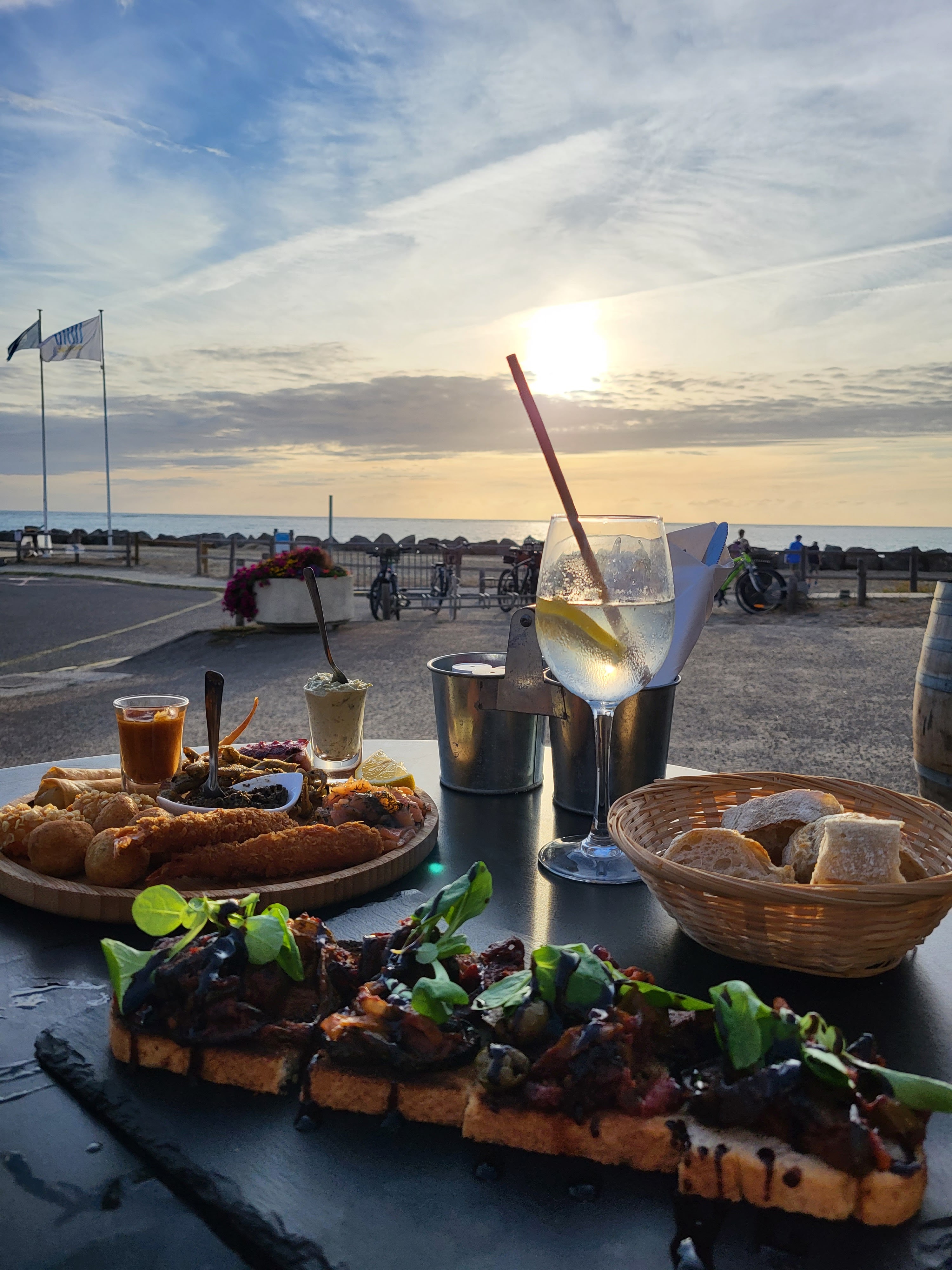 Cadre superbe pour prendre un verre ou venir manger au bord de mer. L’équipe de service est adorable et efficace. Le barman fait de supers cocktail et vous accueillis toujours avec le sourire. Quand aux tapas proposé, un prix raisonnable et une super cuisine. Ce week-end un saxophoniste était sur les lieux pour donner une ambiance très relaxante au lieu. Je vous recommande vivement d’y faire un tour pour manger ou simplement prendre un verre.