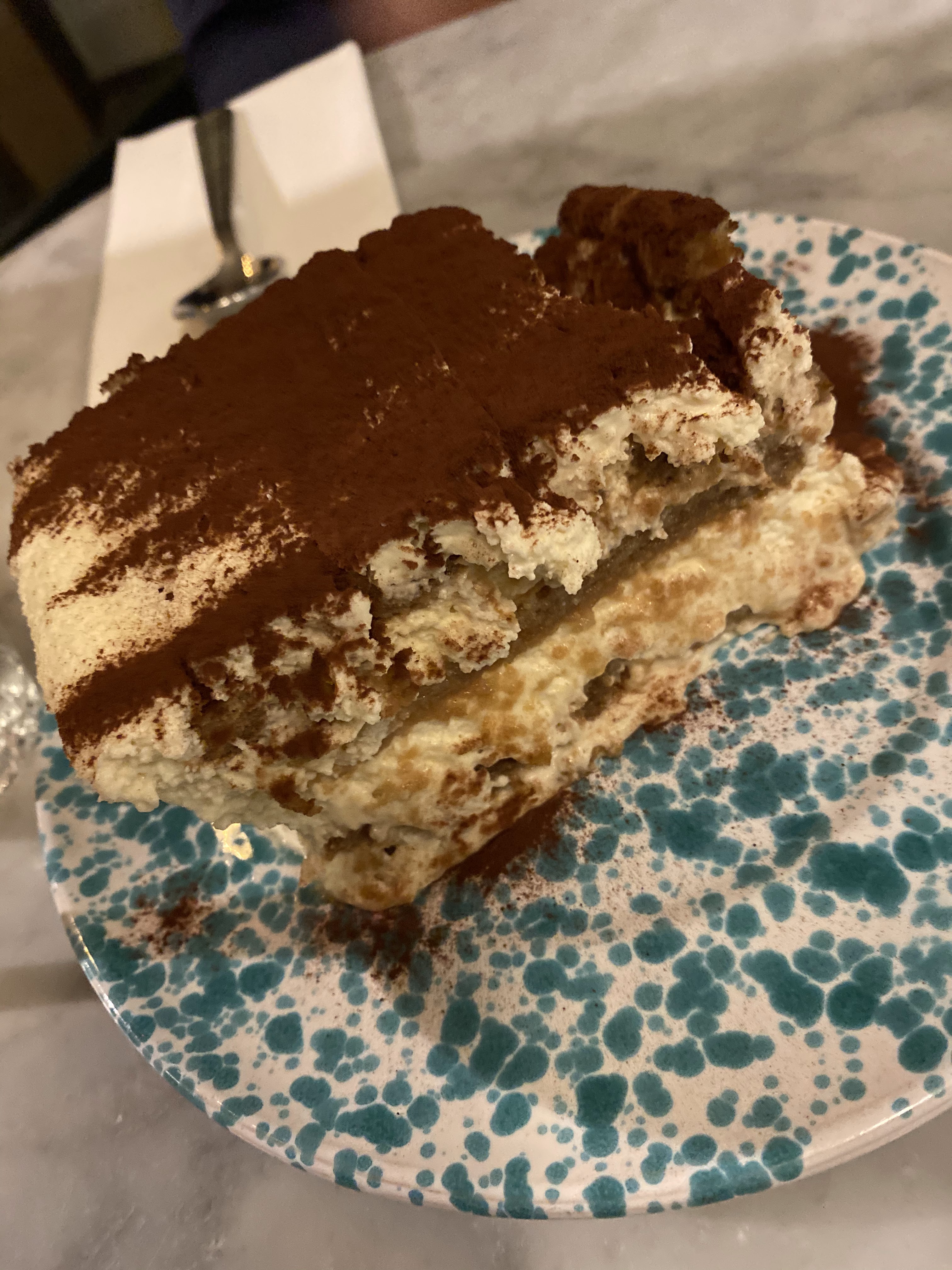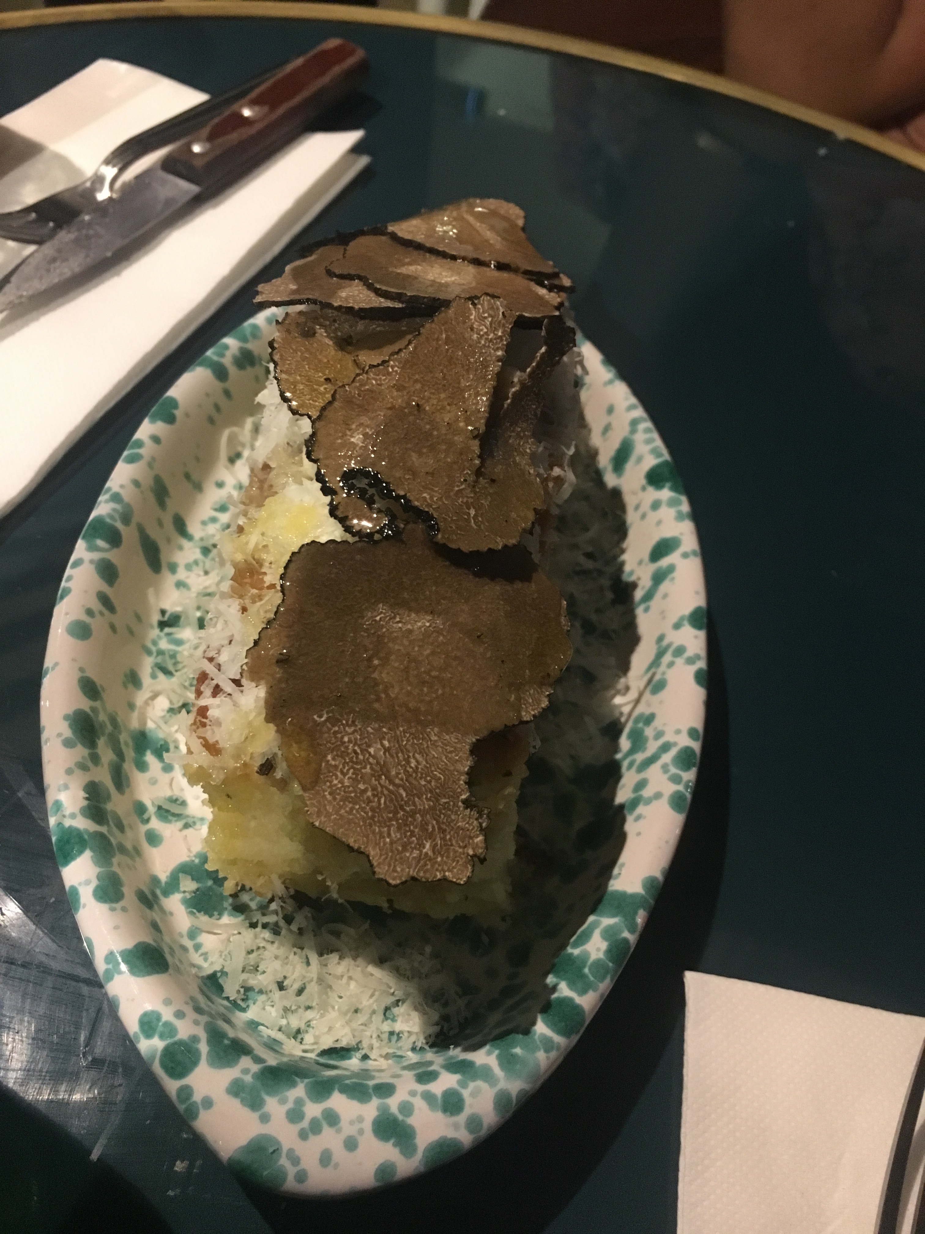 La nourriture est incroyable. Nous avons dégusté des gnocchis frais avec du simple beurre noisette et de la sauge et un plat de pâtes aux truffes râpées. Notre serveur a oublié de traiter notre commande, nous avons donc attendu plus d'une heure pour manger. Mais la cuisine nous a gracieusement fourni des boulettes de burrata et de risotto offertes par la maison.