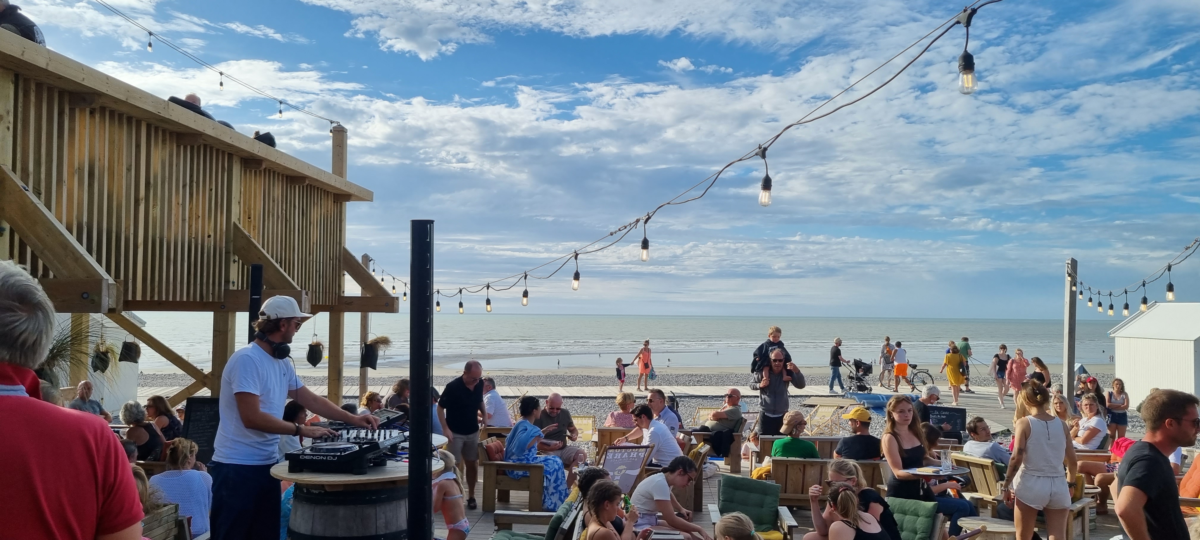 Bar de plage sympa avec ambiance musicale et magnifique vue sur la mer.
