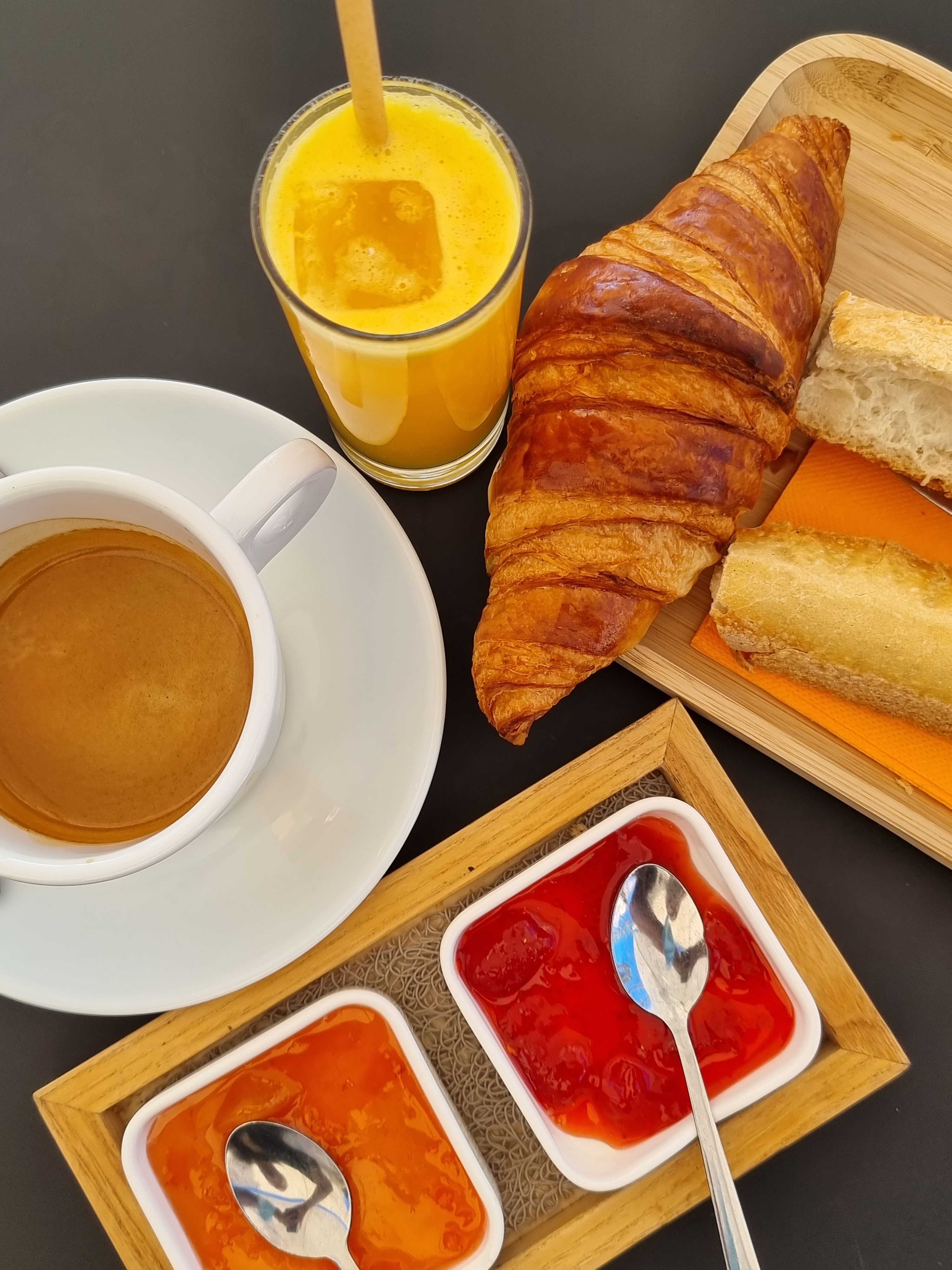 Nous nous sommes arrêtés pour prendre un petit déjeuner dans cet établissement et c'est vraiment très agréable. De plus j'ai été un peu casse pied avec le serveur car je n'avais pas compris la formule et il a été au top, agréable et serviable. Je me suis excusé pour l'incompréhension et il m'a dit de ne pas m'excuser que tout allait bien. Vraiment c'est très agréable d'être bien reçu et bien servit. Le petit déjeuné est copieux, tartines, croissant, confitures maison, jus de fruit pressé à la commande et bien sur la boisson chaude de votre choix. Nous avons passés un très bon moment matinal en couple. Ils ont une autre formule avec des fruits et céréales aussi. Bref vous pouvez y aller vous ne serez pas déçu.