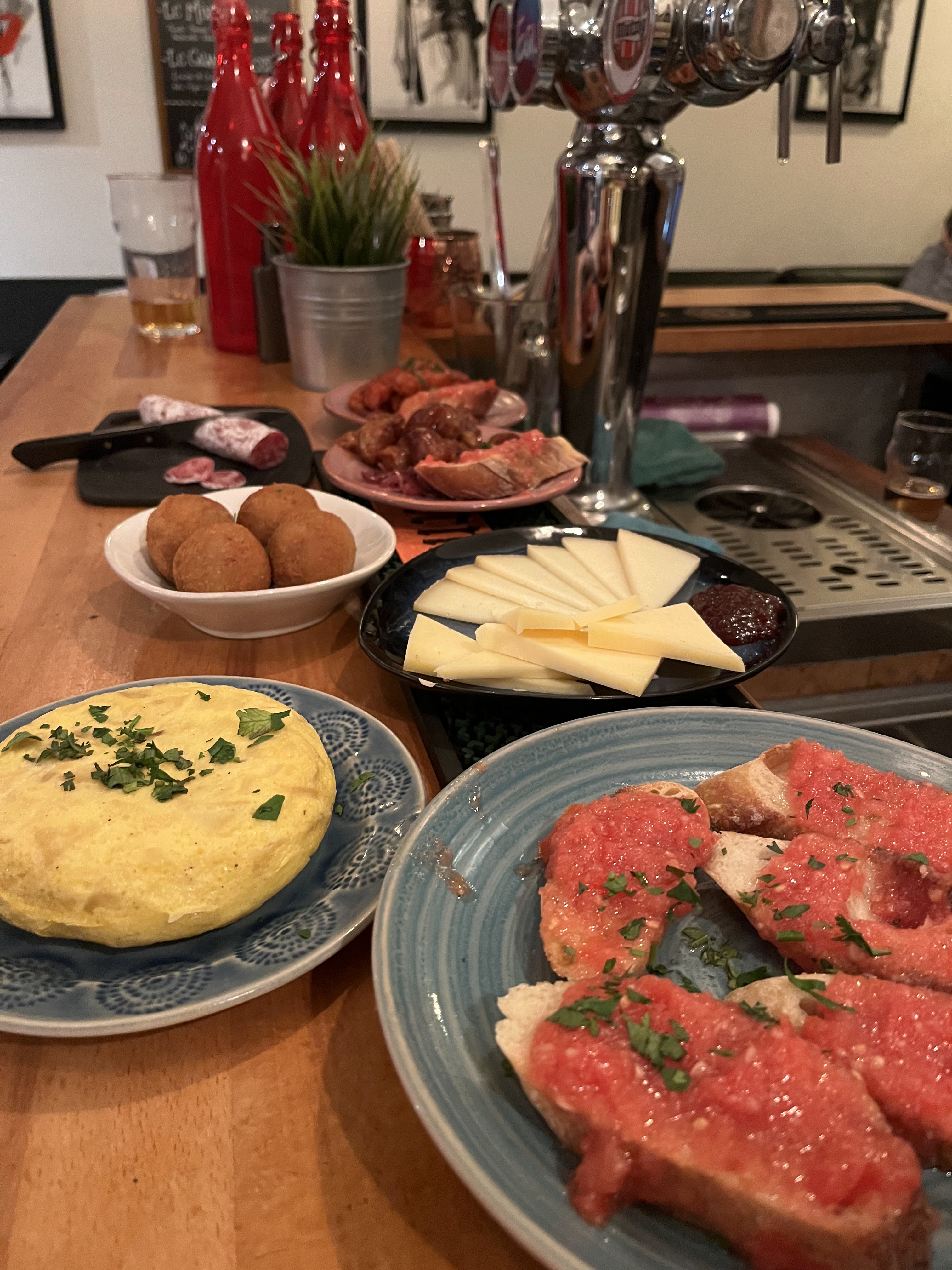 Étant espagnole, les plats à partager étaient un peu petits mais plutôt corrects ! En plus, la déco n'est pas ringarde comme d'autres bars espagnols à l'étranger (images de sevillanas et toureaux...).