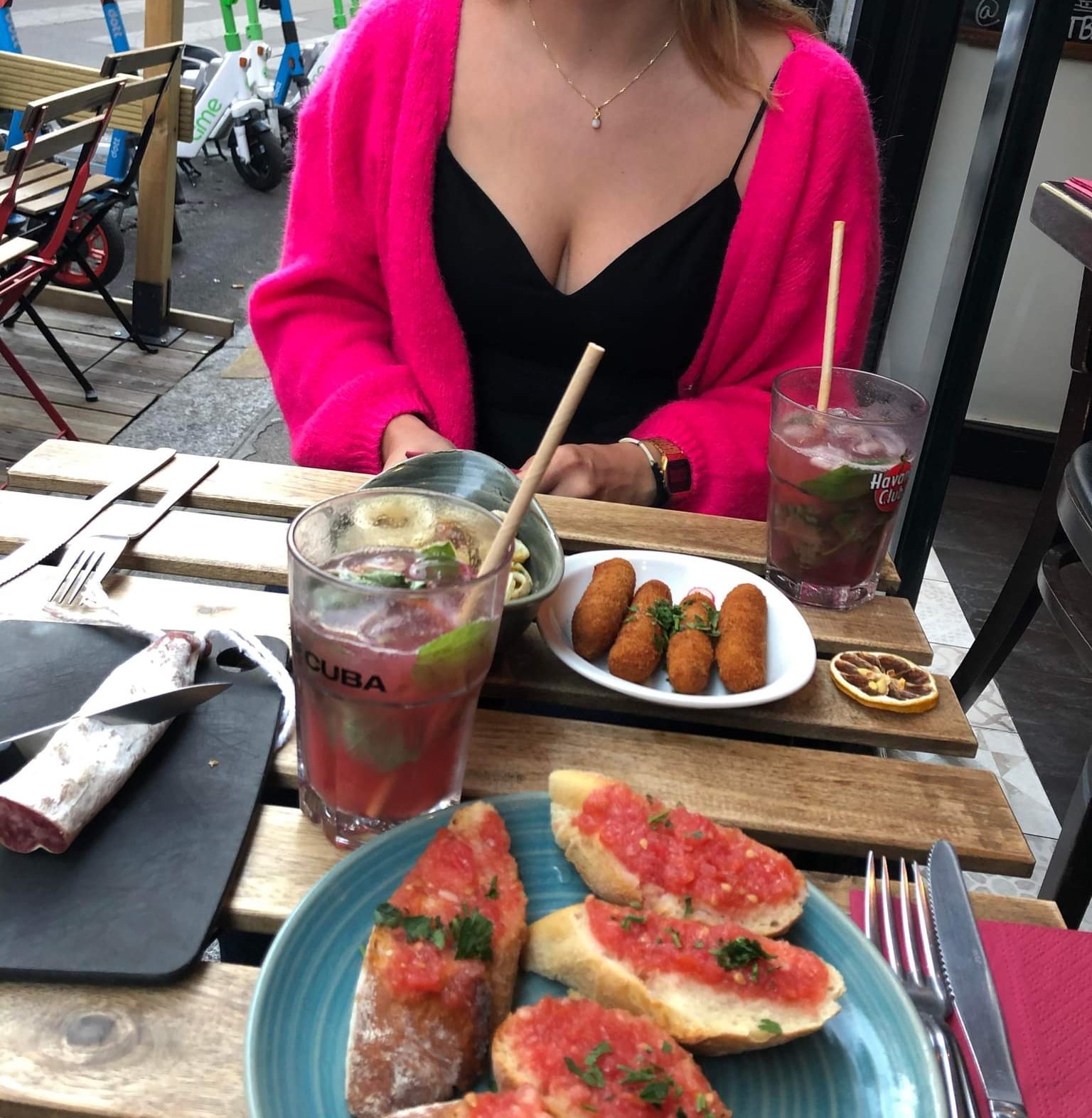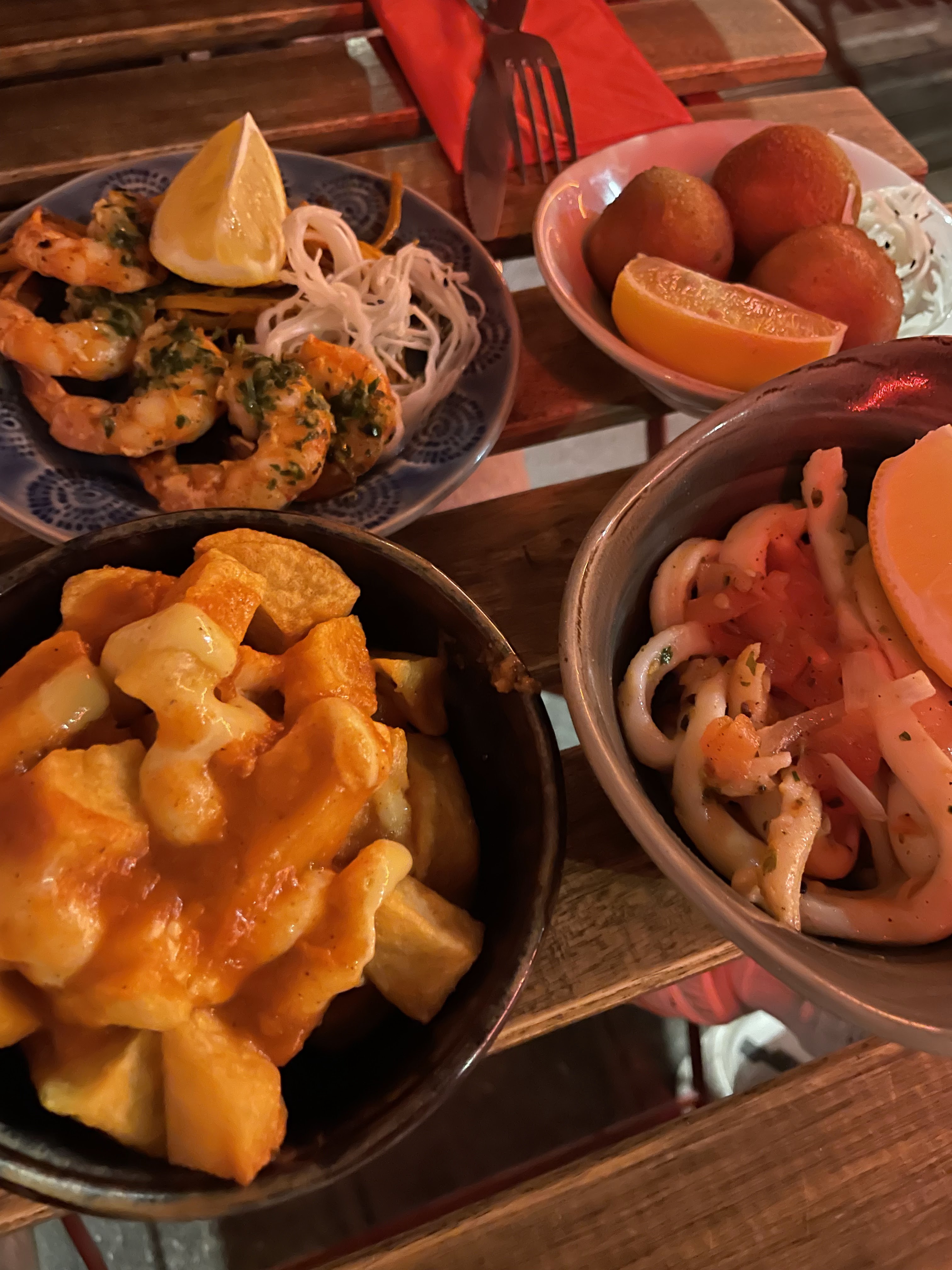 Le P’tit Barcelone sert d’excellent cocktails; et de bons tapas. Pour les pan con tomate il faut vraiment aimer l’ail, les croquetas sont bonnes, jambon ibérique aussi et les calamars sans plus. Les prix sont un peu haut (8€ pour les calamars, voir portion sur photo) mais pas étonnant pour ce quartier animé Le lieu est sympa si vous arrivez assez tôt pour avoir une table en terrasse, sinon il faudra faire le dîner avec du raggaeton à fond dans les oreilles 🙃