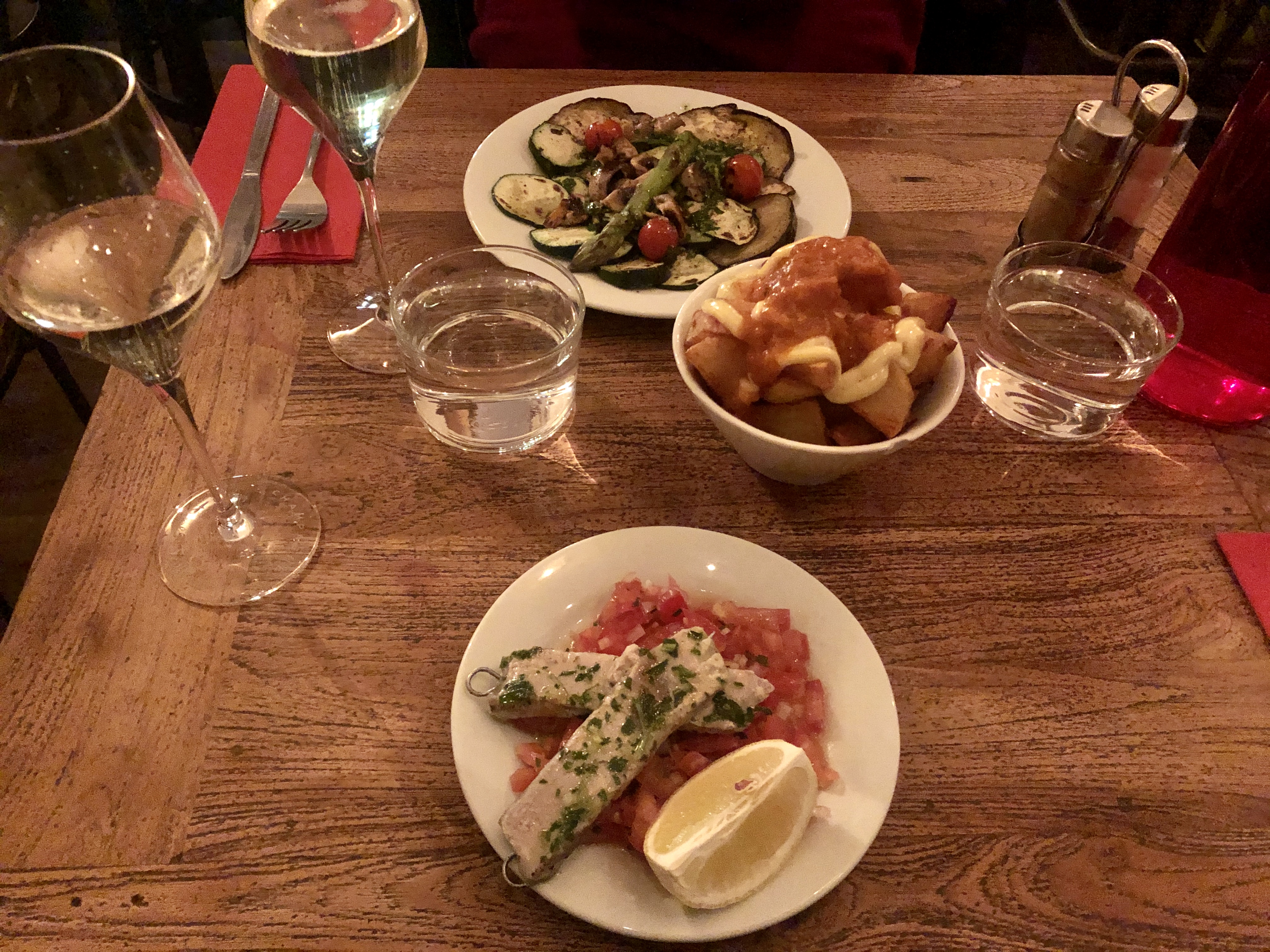 Beaucoup d'attente pour prendre notre commande et recevoir les plats. Probablement lié au fait qu'il n'y a qu'un seul serveur pour tout le restaurant ! Toutefois rien à dire sur la nourriture, nous avons pris la formule d'assortiments de tapas qui était très bonne !