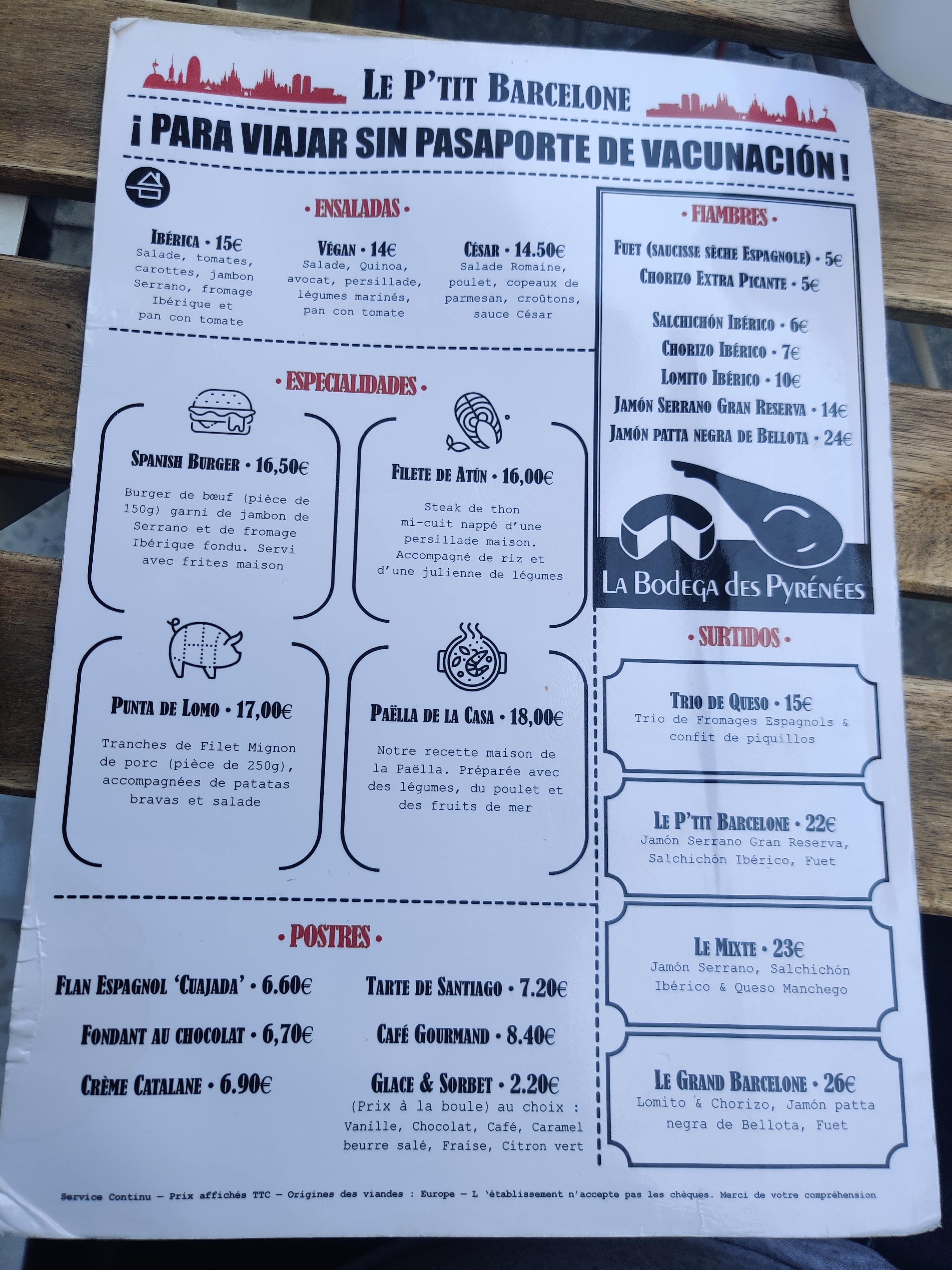 Super expérience au P'tit Barcelone! Equipe hyper sympa, la terrasse est au calme, et les tapas sont excellents pour un prix vraiment très raisonnable. Je conseille vivement le fuet catalan et les croquetas de jamon! Les boissons sont top aussi, un beau choix de cocktails originaux et une carte de vins hispaniques à découvrir ! Bon appétit!