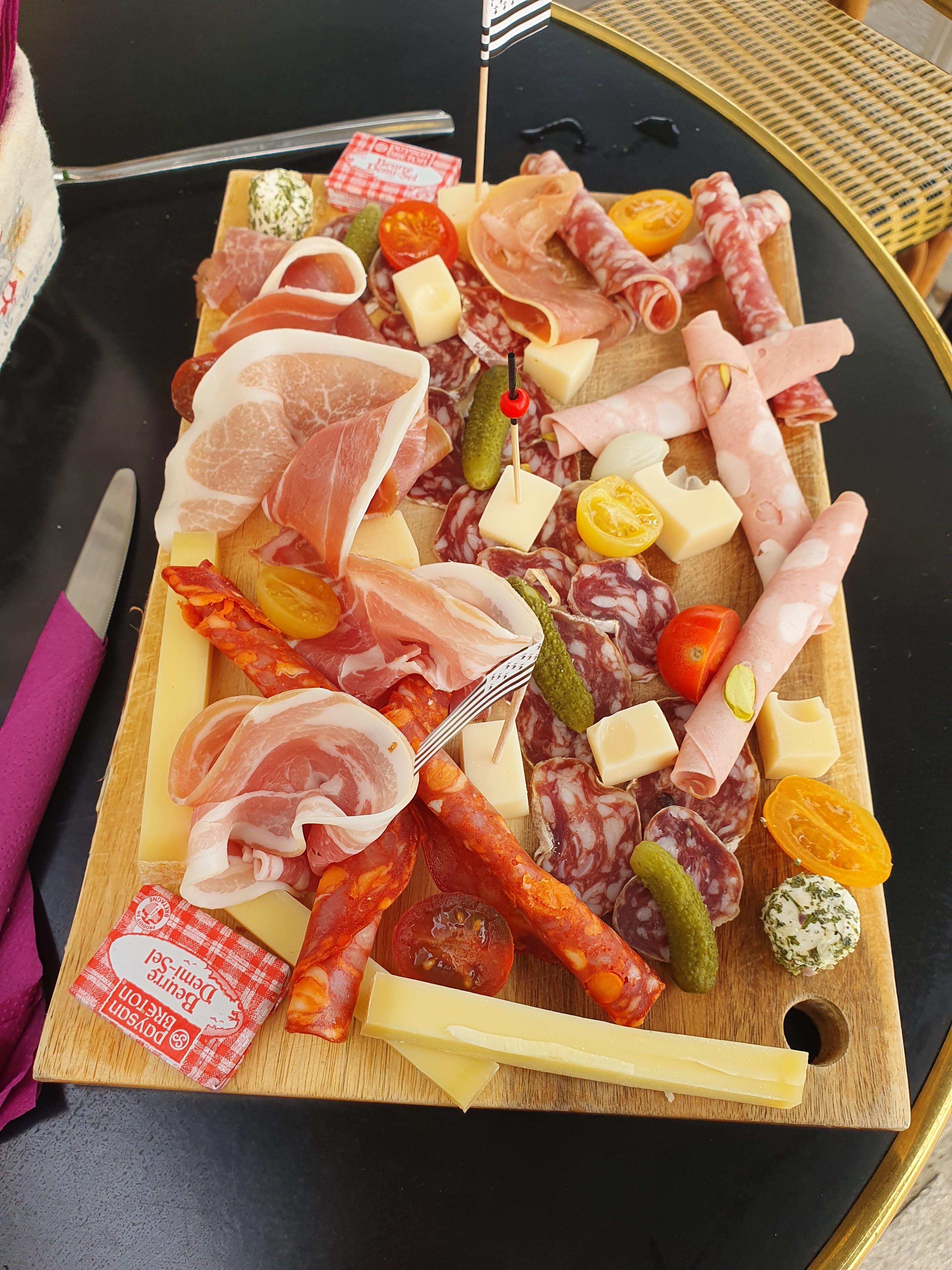 Très bonne planche apéro très varié en fromage de charcuterie accompagné d'une bonne pression parmi un large choix Et un très bon petit déj bien garni le lendemain matin #GR34