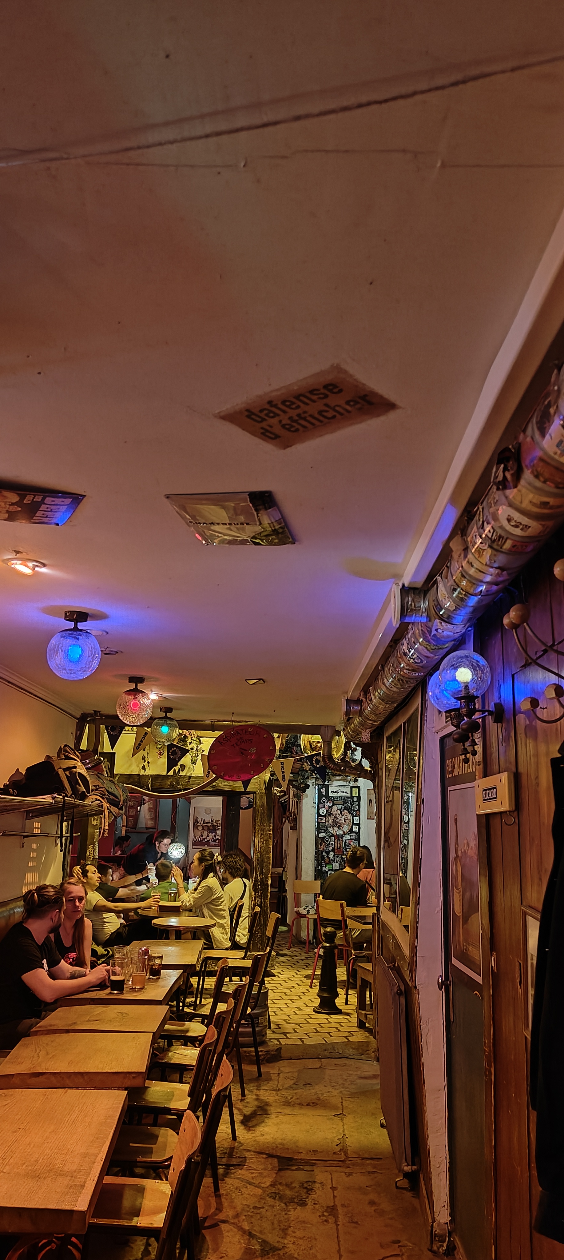 Un des meilleurs bars de Paris. On ne devine pas l'ambiance de l'extérieur mais une fois que l'on y est on a plus envie d'en sortir! Vous êtes transportés dans une rue parisienne, mais en intérieur. Et le tout avec des très bon tarifs ! Propriétaires et serveurs + qu'agreables! Deux choses à savoir: -Pensez à retirer on ne peut payer qu'en cash -Le bar ne proposant pas de restauration on peut ramener sa propre nourriture. A très bientôt !
