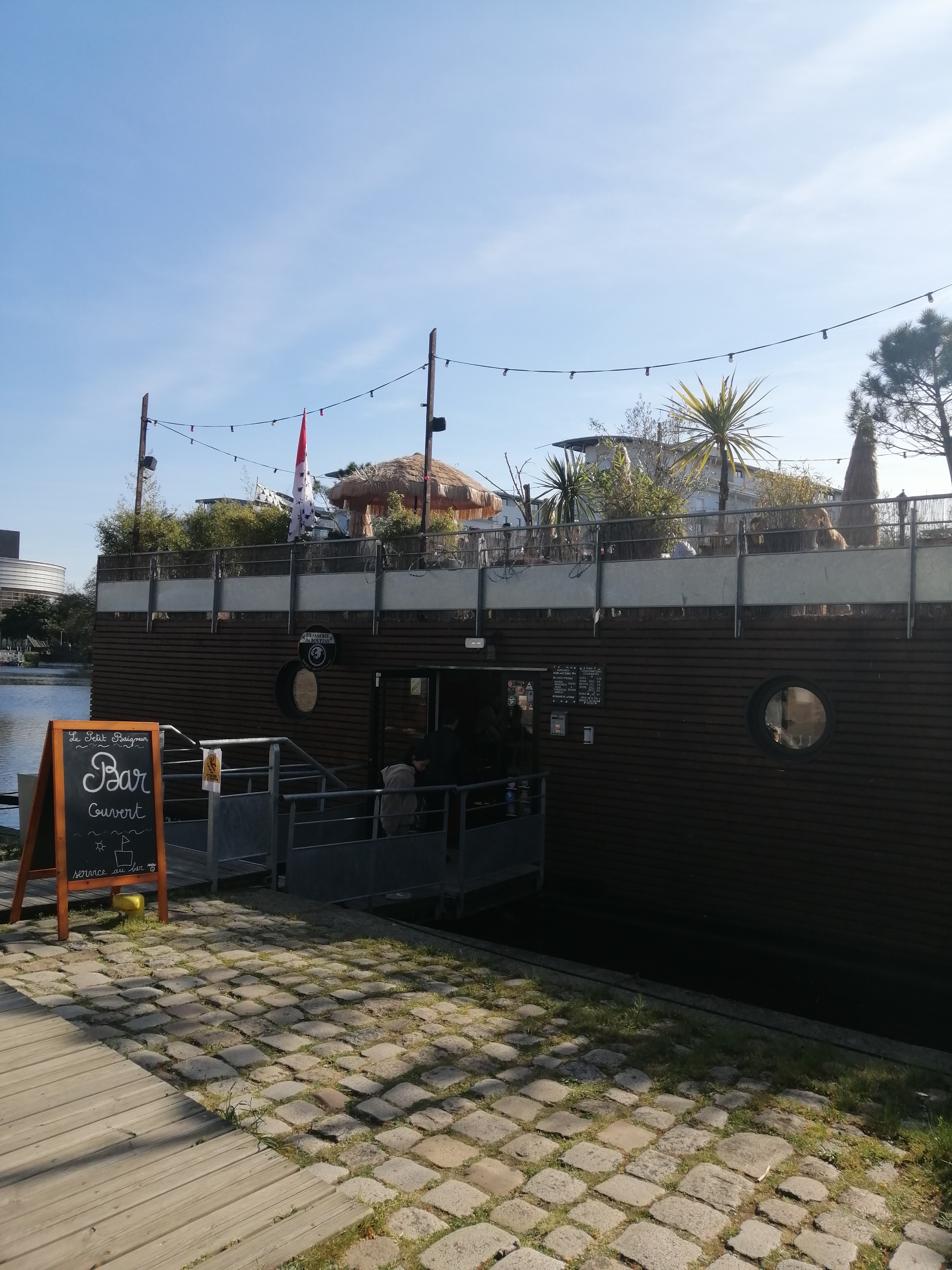 Lieu et propriétaire sympathiques. Cette idée de bar sur l'eau est originale et la terrasse supérieure est plus qu'appréciable en été. Les quiz sont également une idée bienvenue. Seul bémol, les prix un peu chers.
