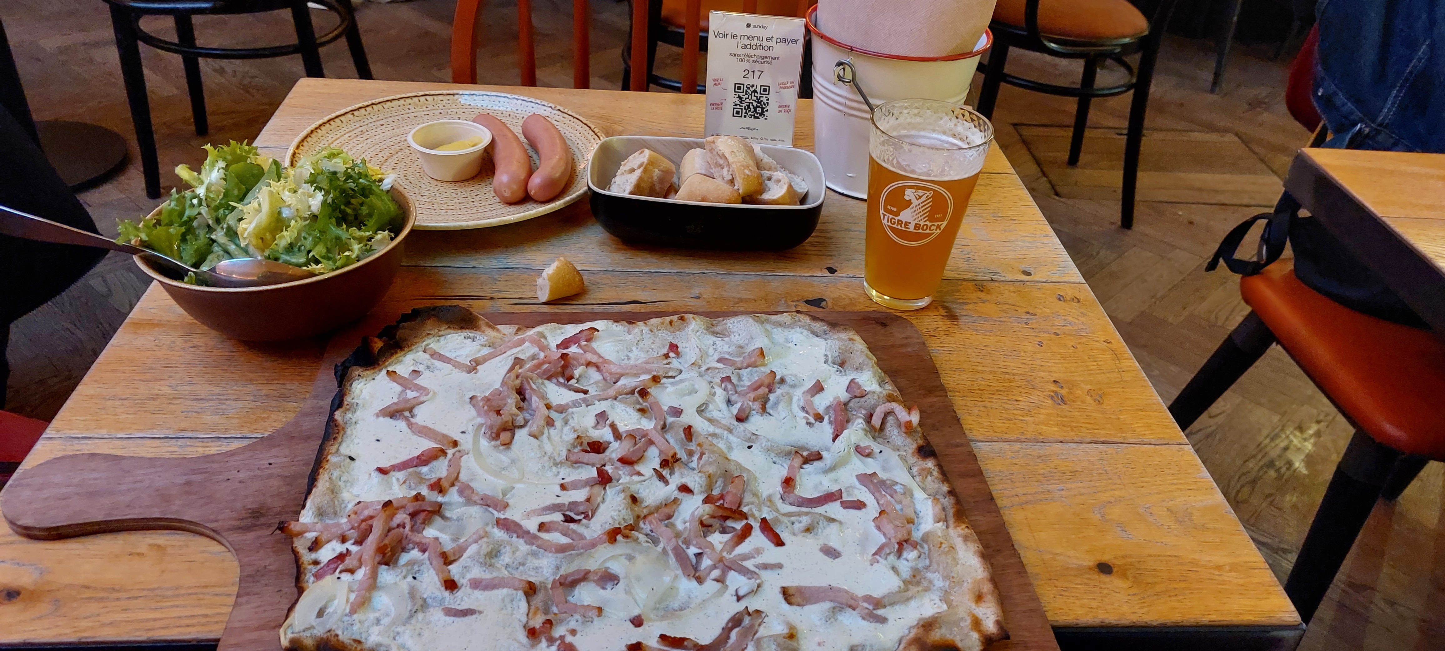 Visite en plein milieu de l'après-midi. Tartes flambées plutôt bonnes accompagnées d'une bière dans une ambiance du Tigre sympathique car le lieu est joliment décoré. Le moment fut agréable !