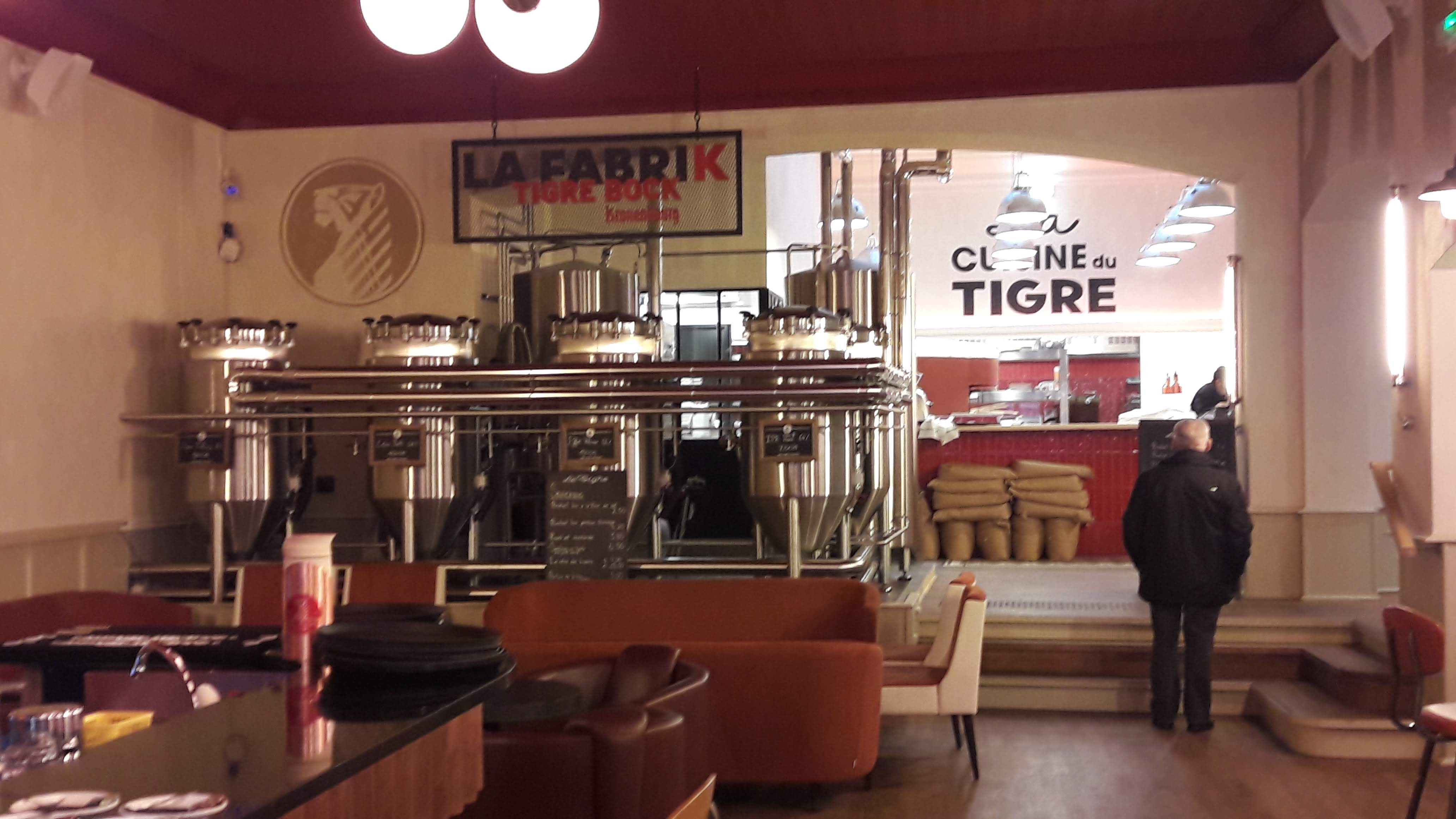 Chouette endroit, une vraie brasserie. On boit la bière brassée sur place.. elle est bonne .quasi impossible à trouver sauf au Tigre la tarte flambée dont la pâte est faite sur place,des lardons qui sentent le lard la crème est riche, bref une vraie tarte flambée à l ancienne. Un côté bar, un côté restaurant ou on peut manger toute la journée. Une super terrasse à l abri du bruit des voitures. Du WiFi partout, même dans le caveau qu on peut privatiser.