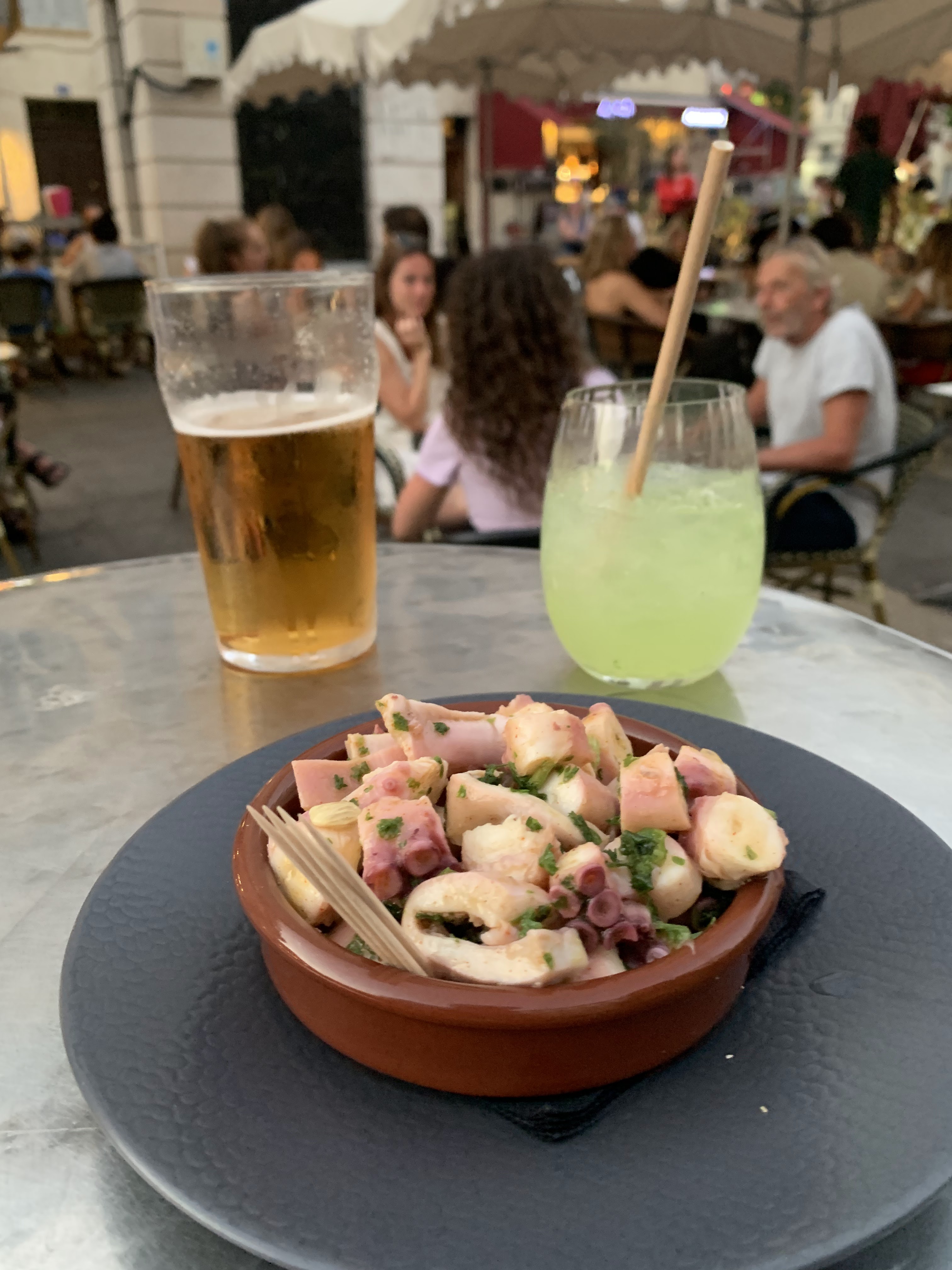 Serveurs au top! Service rapide ! Cocktail et bière bon et bonne. Poulpe frit sauce pesto excellent mais quantité moindre...
