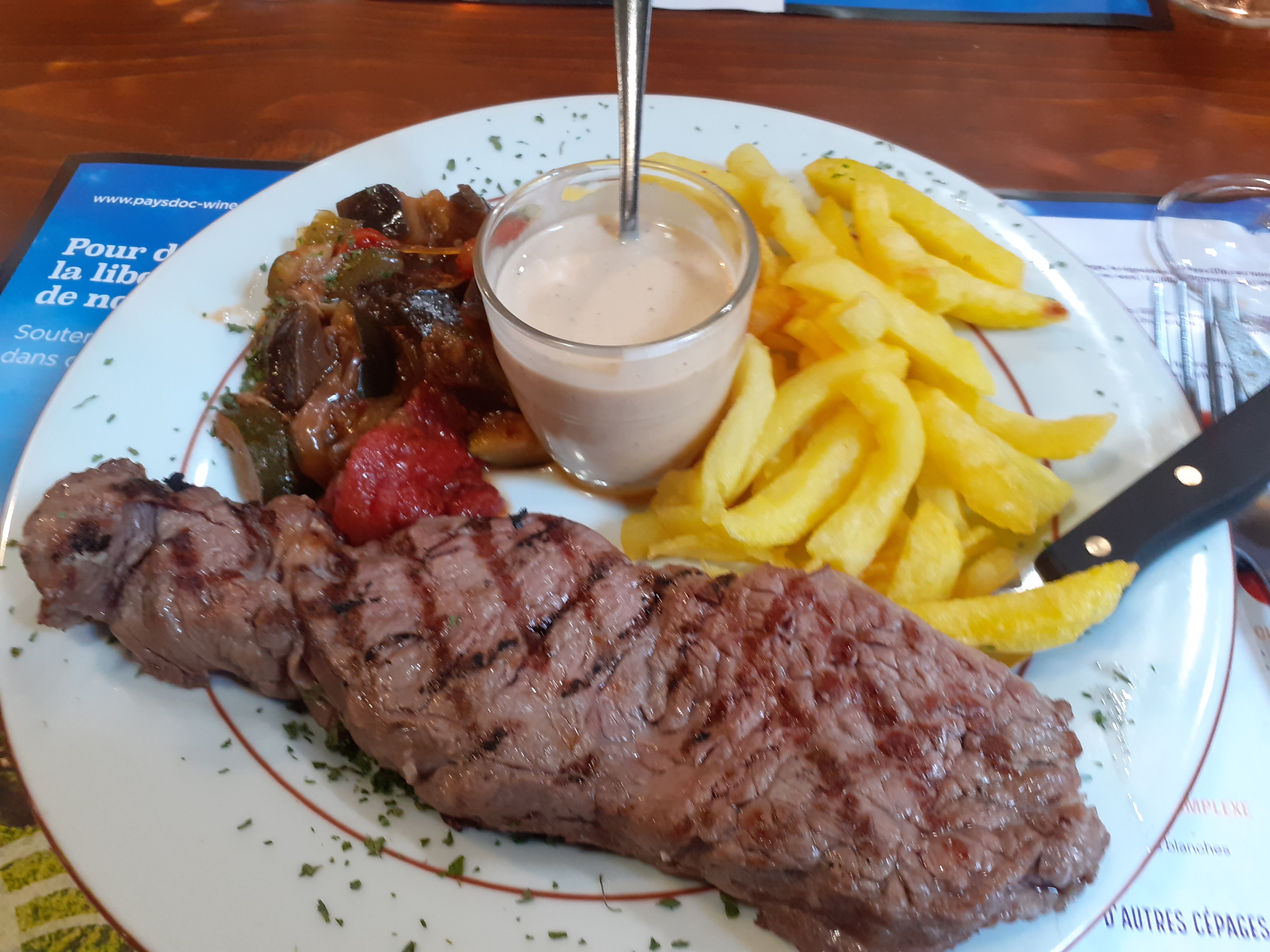 Pour nous les Québécois, le menu du jour pour le dîner était des hauts de cuisses servis avec une salade, le tout était absolument succulent! Recommande fortement!!!