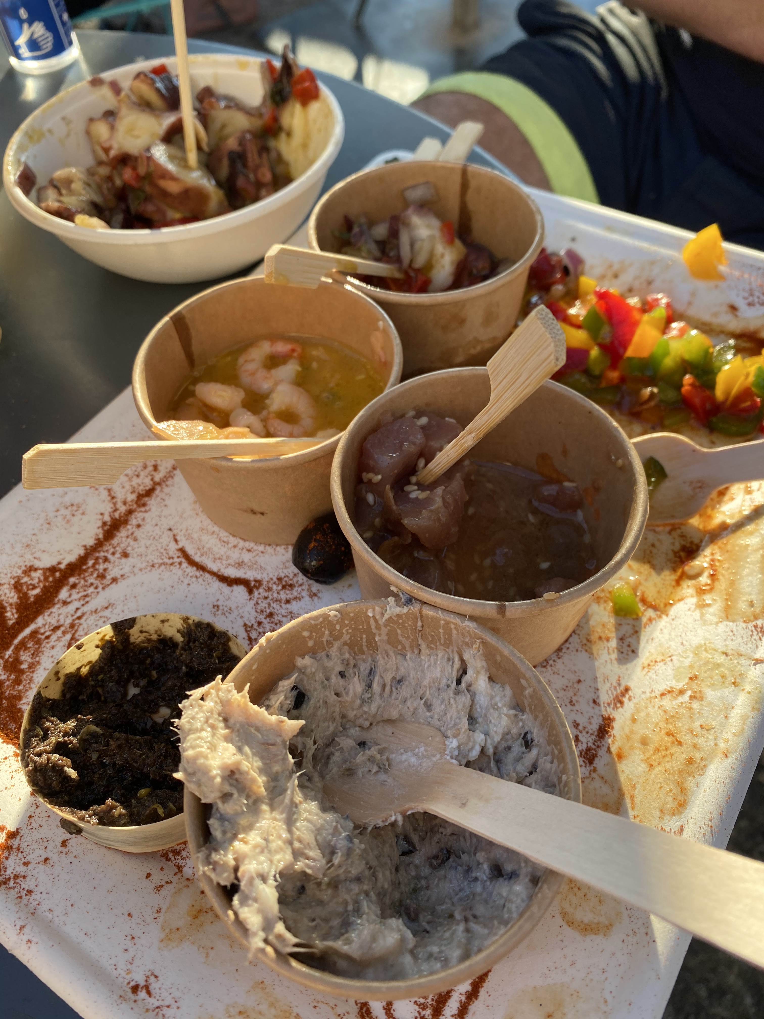 Un REGAL!! Des plats/tapas frais, délicieux et surprenants! Tartare de saumon aux fruits de la passion et gingembre, tartare de thon au sésame, cette petite salade de poulpe.. une découverte culinaire à tester à tout prix. Un service très sympa en plus avec une vue incroyable. Merci! :)
