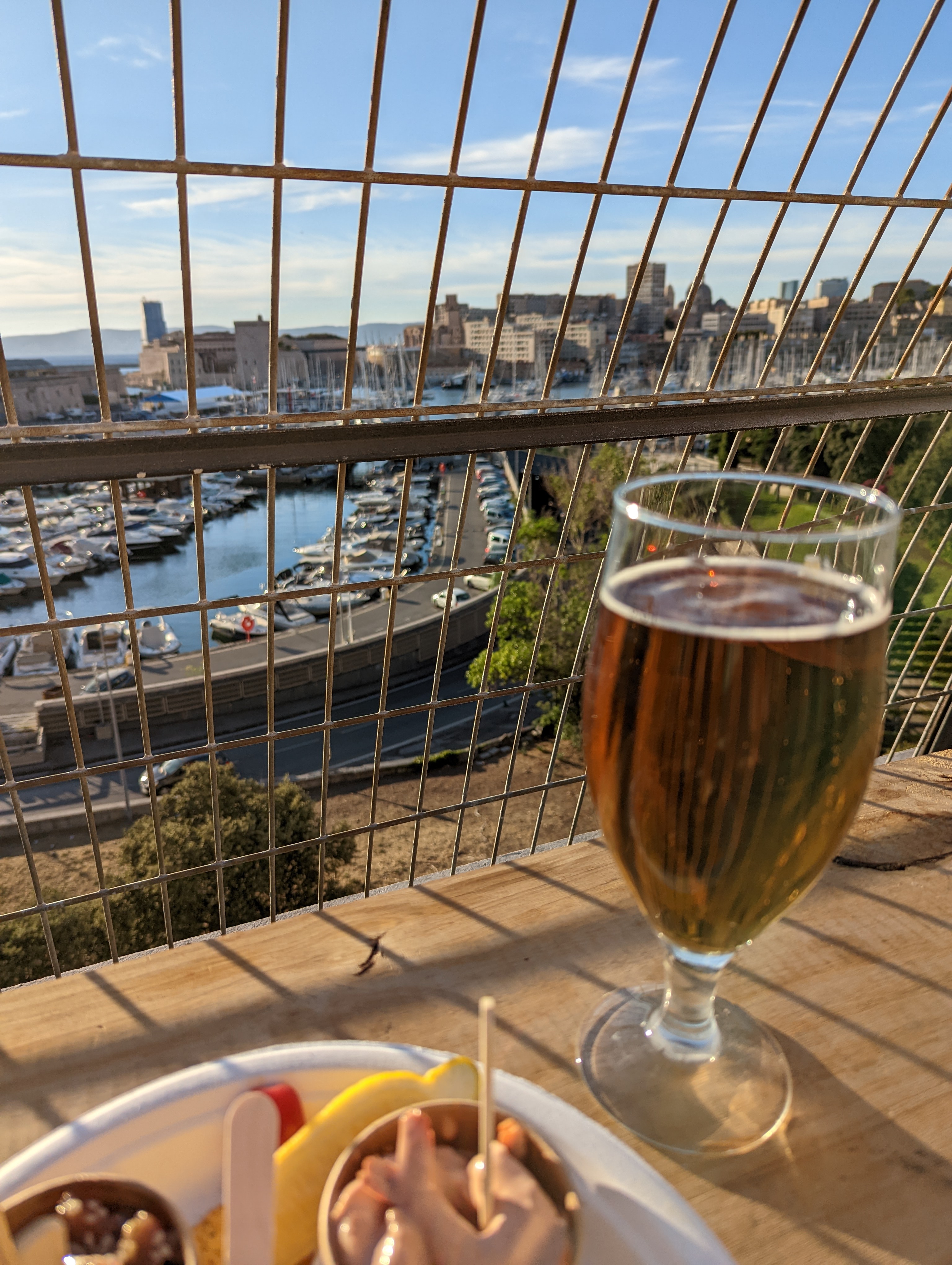 Nous y sommes allés à 2 vers 18h, pour découvrir ce lieu dont on nous avait parlé. Nous avons pris une planche terre & mer à 16€, cela vaut son prix ! la planche était bonne et en bonne quantité, sans être excellente, donc le prix est à mon avis honnête mais cela ne vaut que 4* pour moi. Le spot lui est incroyable ! le lieu dans sa position et sa vue sur le vieux port entre autre, vaut bien 5*, l'ambiance est top ! Il y a un peu de passage de véhicule en contre-bas, mais cela ne vient pas perturber pour autant notre apéro. Je reviendrais sans hésitation en guise d'apéro avec des amis !