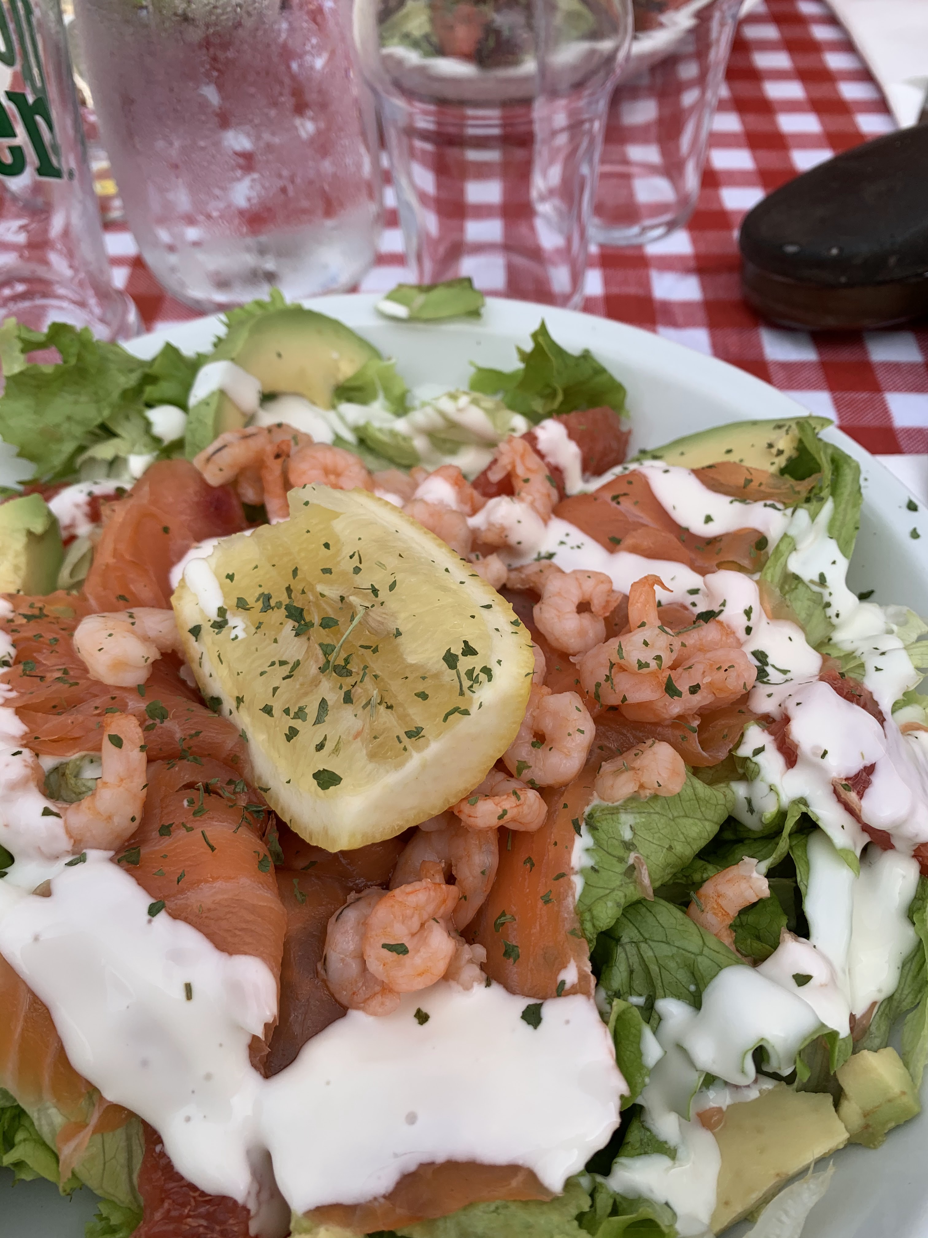Deux belles assiettes de salade composée fraîche et appétissante. Dommage que le service en terrasse ait manqué de chaleur.