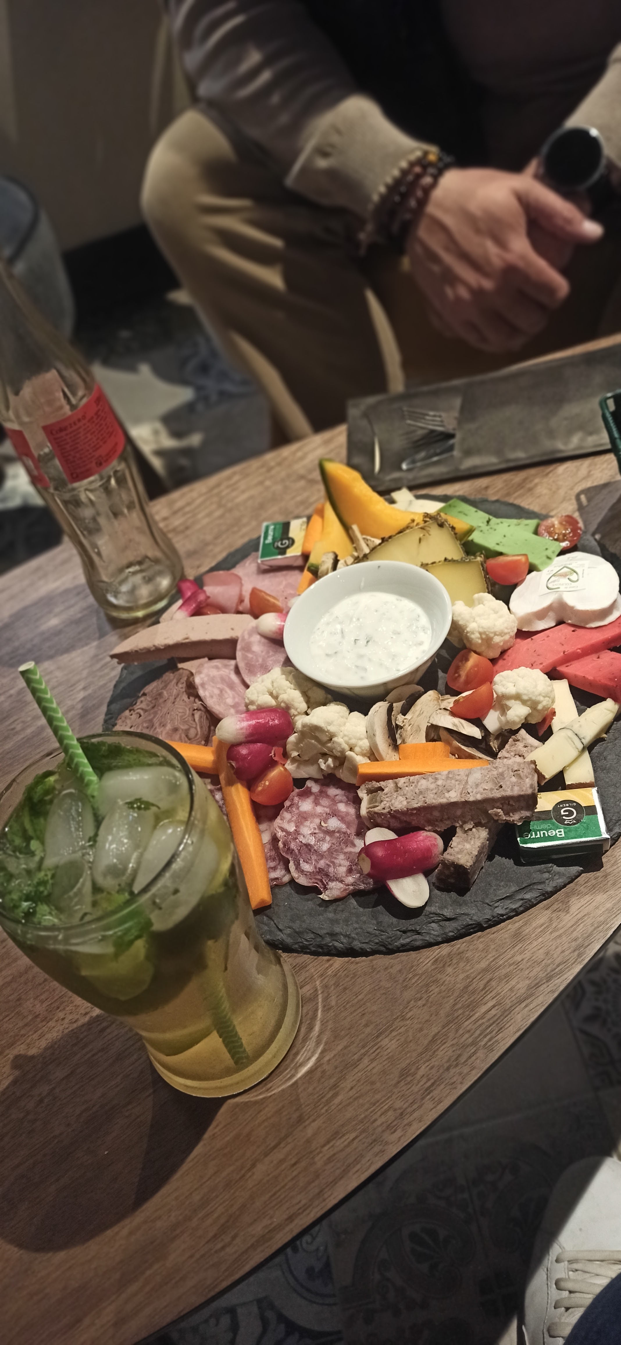Lieu très convivial. Produits frais . Planche copieuse et bien variée avec une présentation soignée. Je conseille cet endroit pour passer une soirée agréable.