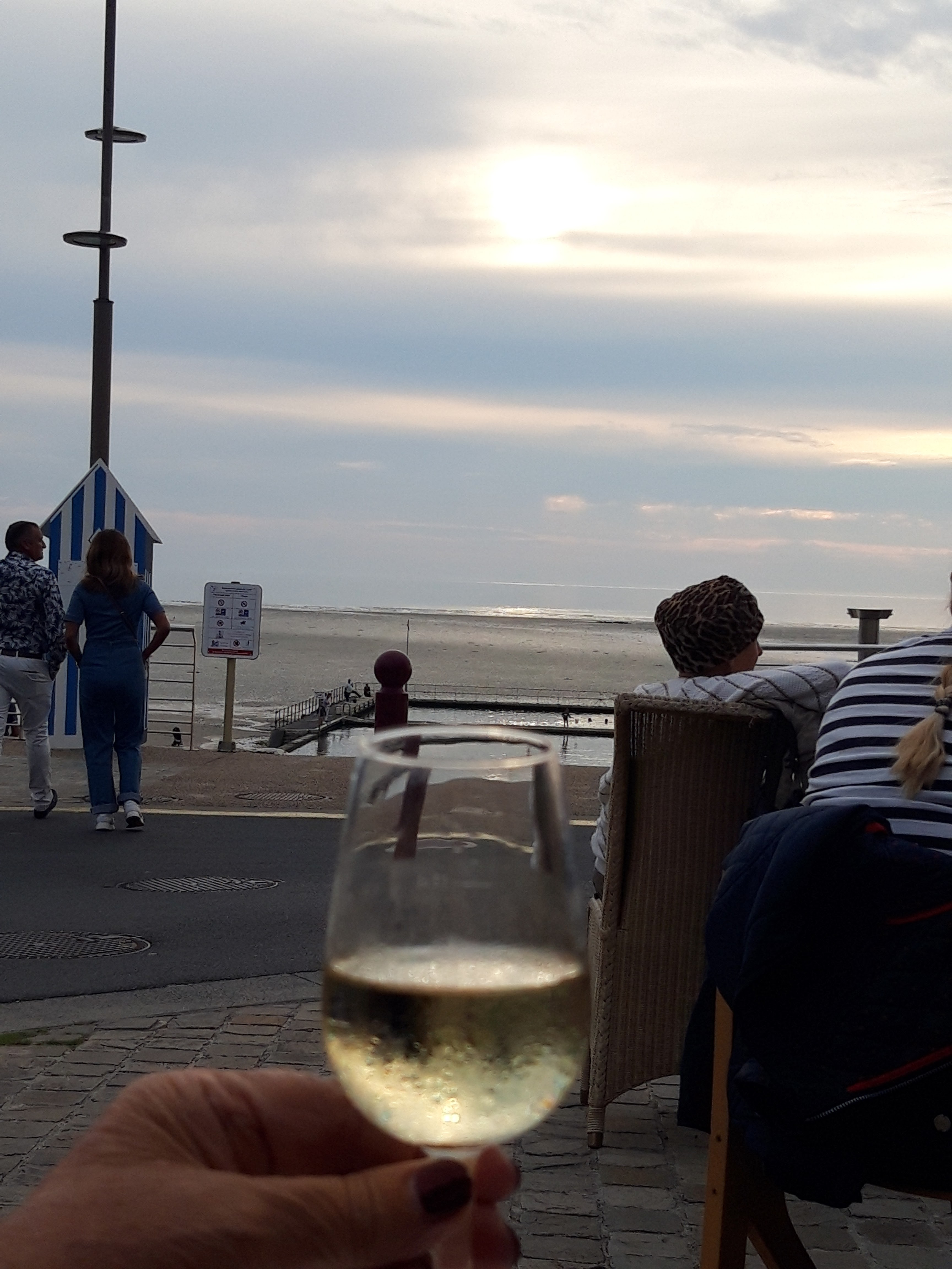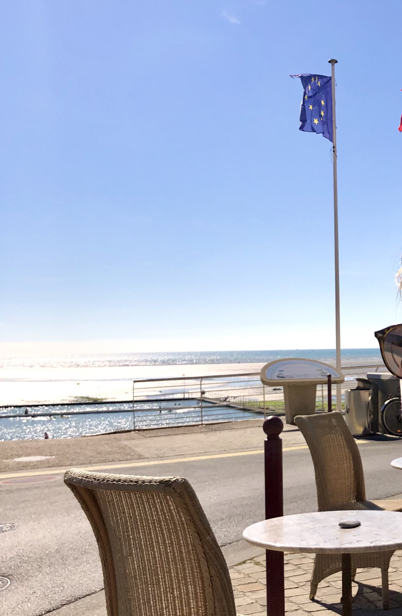 Bonjour, Bonjour, Samedi, dans la baie du Mont-Saint-Michel et sur la route en partance pour BARFLEUR, nous avons fait une petite pose à Saint-Pair-sur-Mer. But : boire un café avant de reprendre notre route… Il a fallu chercher. C’est en bordure de mer (nous ne pouvions faire plus près) que nous avons enfin trouvé Le rayon vert. Partis pour boire ce café (que nous avons bu), nous n'avons pas résisté à nous faire plaisir avec une douzaine d'huitres pour deux et 1 verre de blanc chacun. Un régal ! Un endroit chaleureux où nous nous sommes sentis extrêmement bien. Merci au patron du lieu.