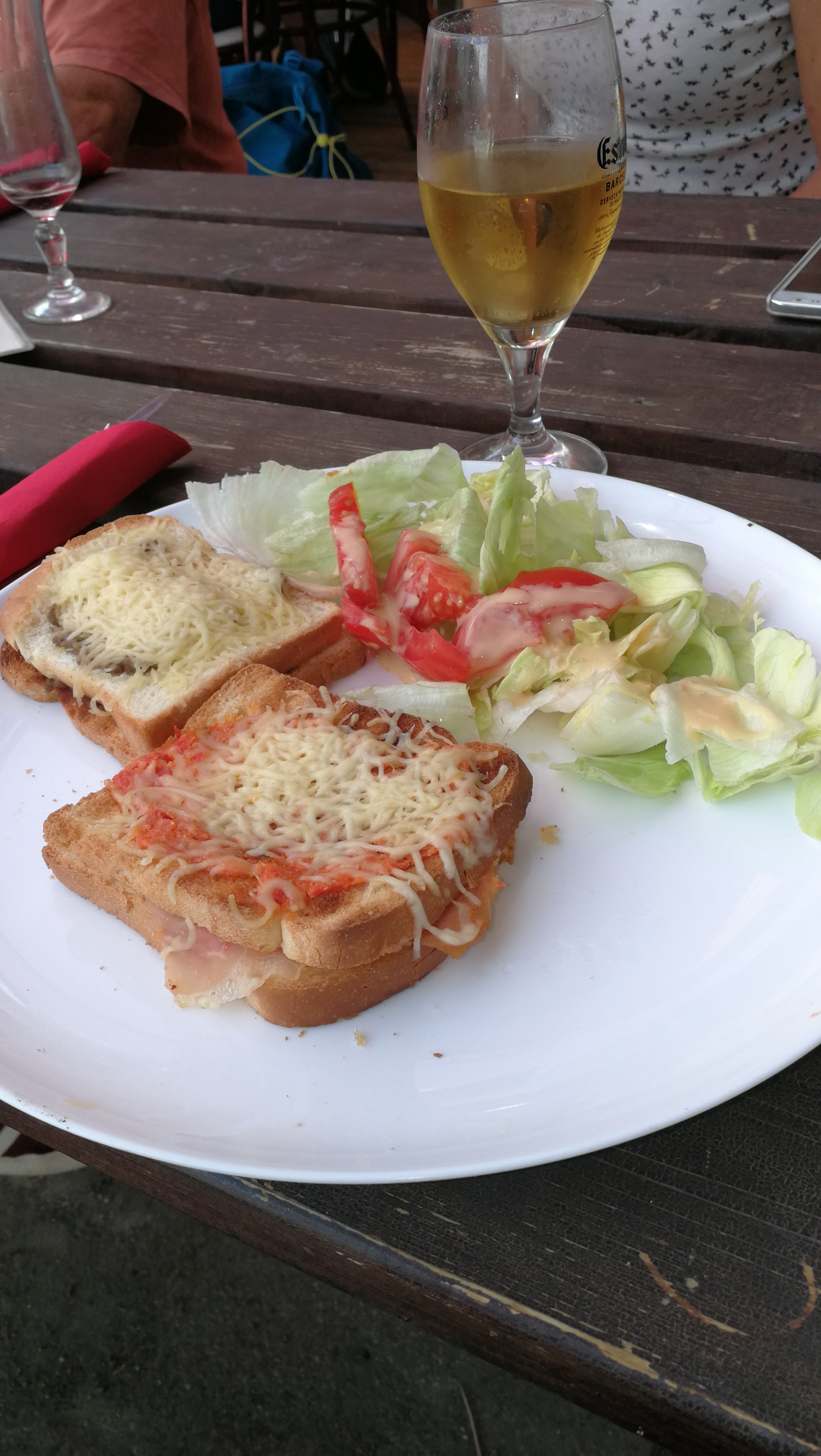 Bonne ambiance. Vraiment bonnes tartines (jambon et fromage de chèvre), bonnes gaufres, bon monaco !