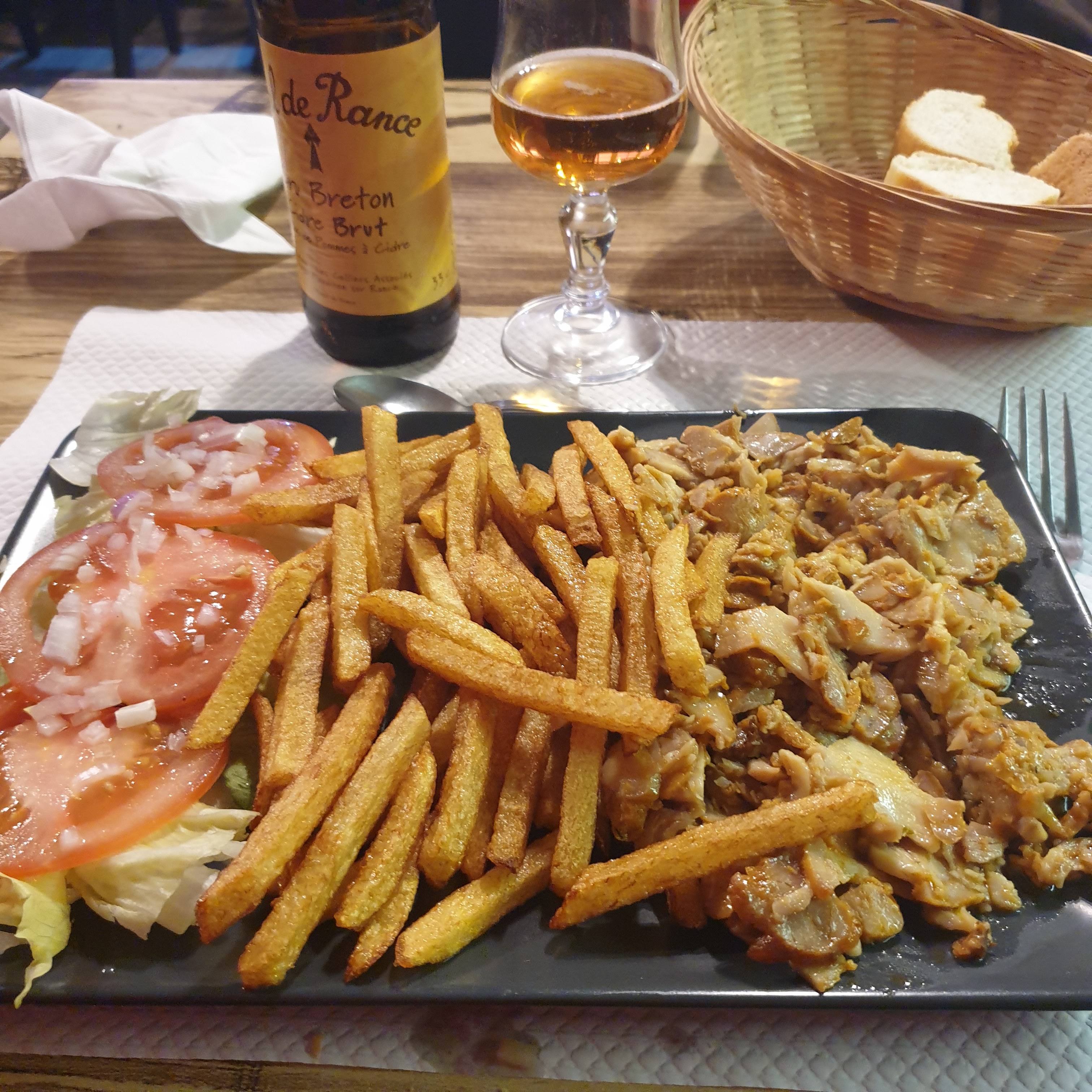 Cuisine familiale, frites maison, juste un bémol les carottes râpées et concombres n'étaient pas du jour, à part ça très bien, les gérants sont très aimable.