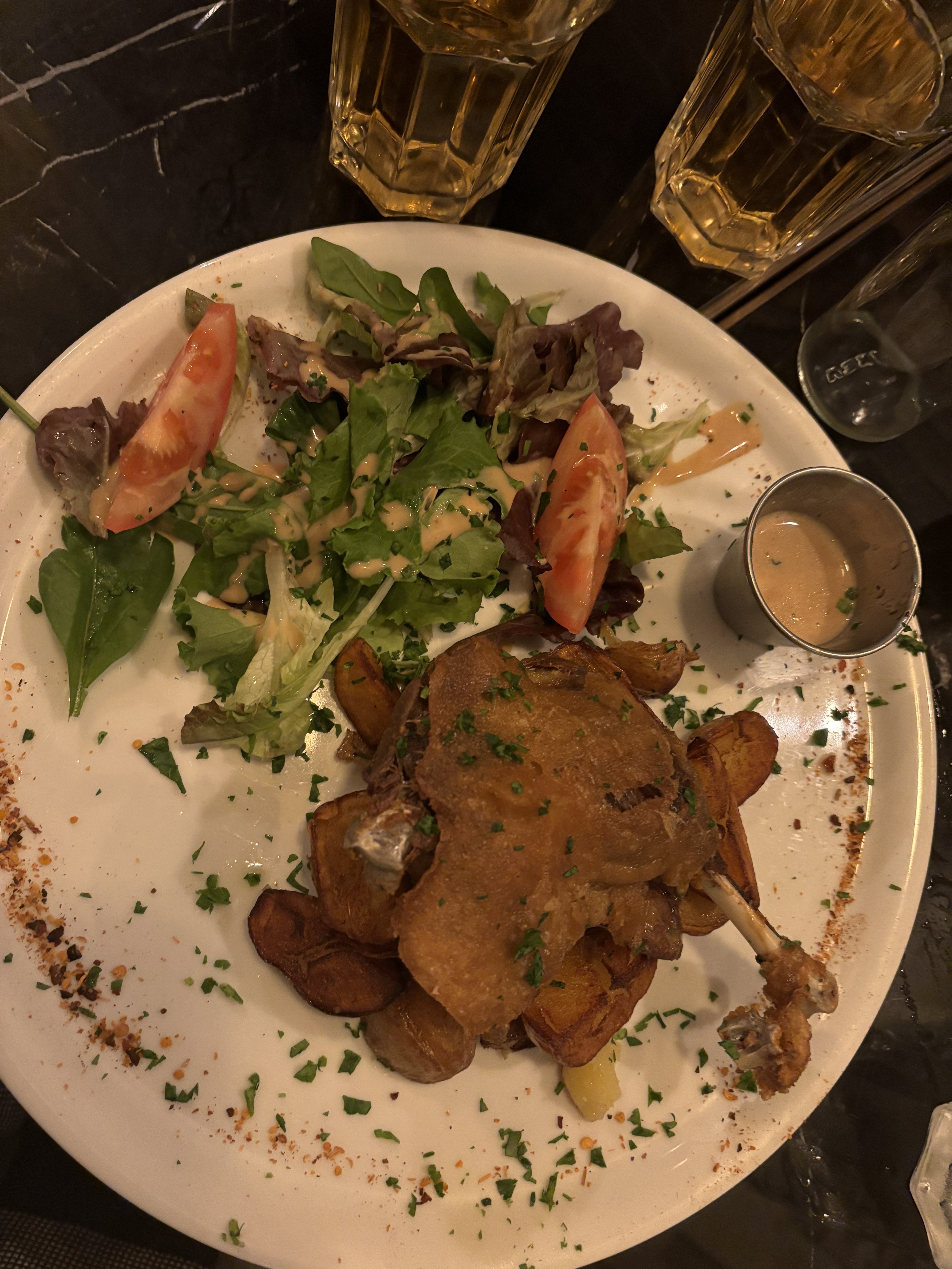 Franchement bon. Et pas si cher. J’ai pris un confit de canard qui était très bien cuit avec des pommes grenailles un peu moins bien cuites mais très bon dans l’ensemble. Une étoile en moins pour la sauce au poivre qui n’était pas annoncée, que je n’aime pas et que j’ai du mettre sur le côté.