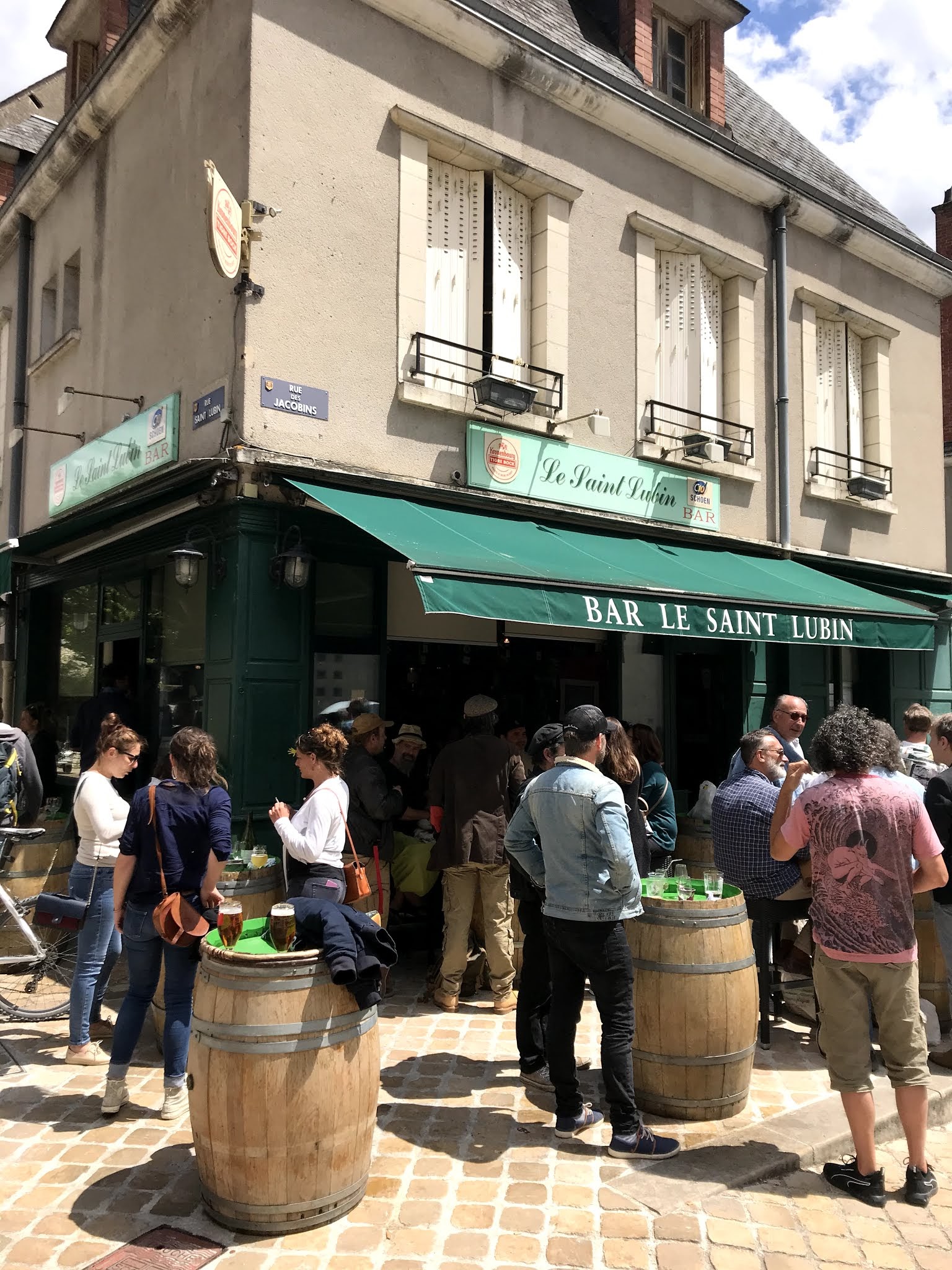 🍻 Il suffit de voir l'impatience des Blésois pour la réouverture du Saint Lubin après la fermeture des bars durant la crise du COVID-19 pour comprendre que le cœur de la ville de Blois bats derrière cette façade verte. Ici des destins se nouent et se dénouent au fil des soirées et des concerts régulièrement organisés. Pour ma part, j'y suis passé devant en vélo un jour ensoleillé de juin 2018, après être arrivé dans la ville par la Loire à Vélo, j'y ai un entendu un air de reggae familier et plaisant, ce qui m'a immédiatement donné envie de garer mon vélo et de m'attabler en terrasse pour prendre une bonne bière bien fraiche. Depuis j'y ai rencontré toutes les couleurs de la faune locale dans une ambiance chaleureuse et conviviale. J'y ai même rencontré l'amour un soir d'avril 2019 sur les marches juste devant le bar. Étant maintenant devenu moi-même un autochtone, après être tombé amoureux sous le charme de la ville, je le fréquente désormais assidument de nombreux soirs de la semaine. Et il me faudrait un très bon prétexte pour ne pas y aller le samedi matin après le marché, rituel partagé par de nombreux Blésois. Même si il ne paye pas de mine au premier abord, le Saint Lubin est une institution de la ville, et son patron un pilier au grand cœur. Un bar convivial, chaleureux et humain comme on les aime ❤️ !