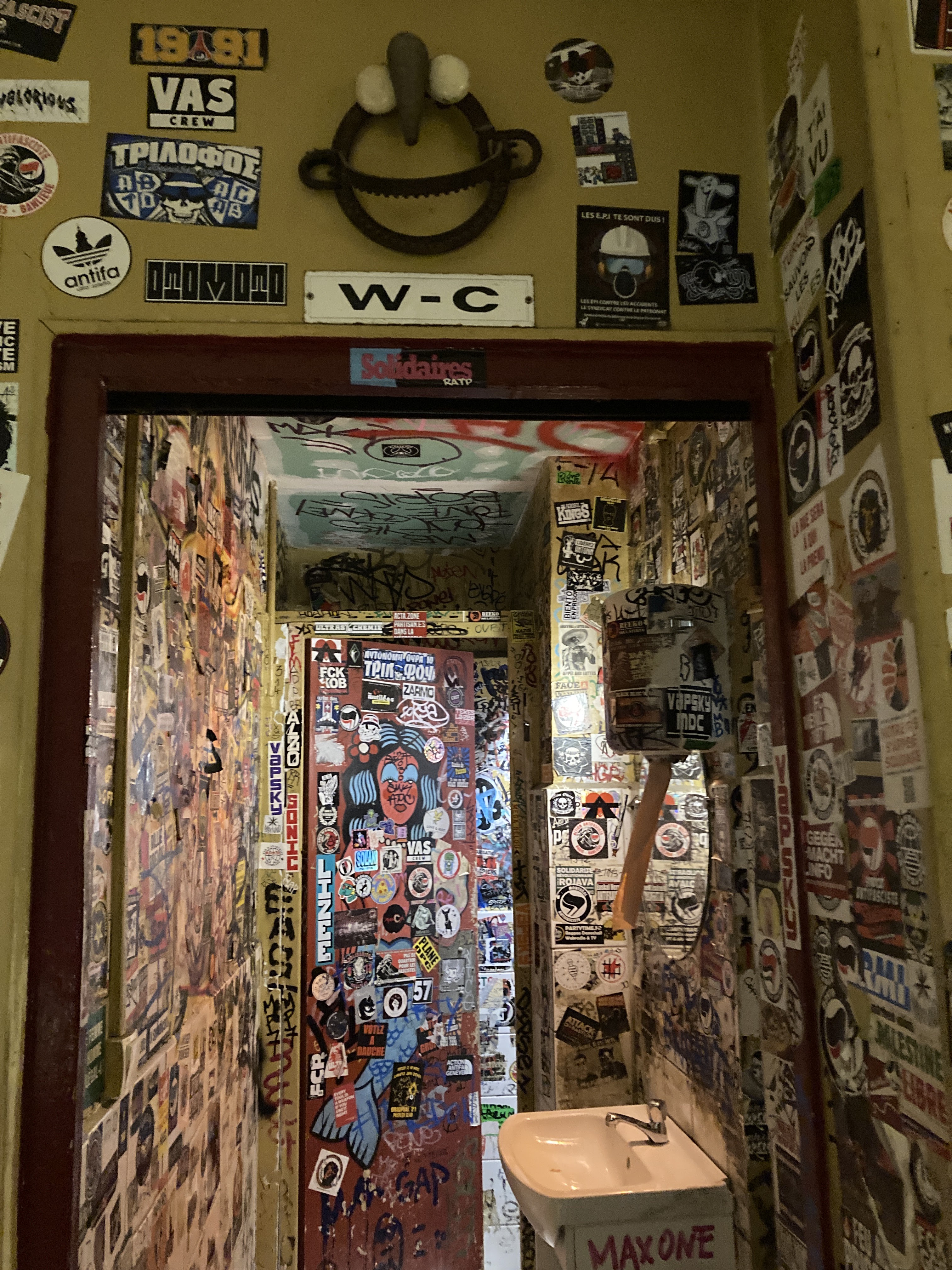 Ceci n’est pas qu’un bar. C’est une galerie d’art, un lieu de rencontre idéologique, de luttes et de résistance, de solidarités, de révoltes et d’anarchie. C’est calme, c’est beau, c’est honnête, ça ne prétend pas être quoi que ce soit, c’est accessible aux petits budgets, il y a des jus de fruits divers et variés, on pense aux migrants et on s’organise pour leur venir en aide, aux TDS, aux laissés pour compte, on les y croise, on les voit briller, on ramasse un flyer de manif à la sortie.