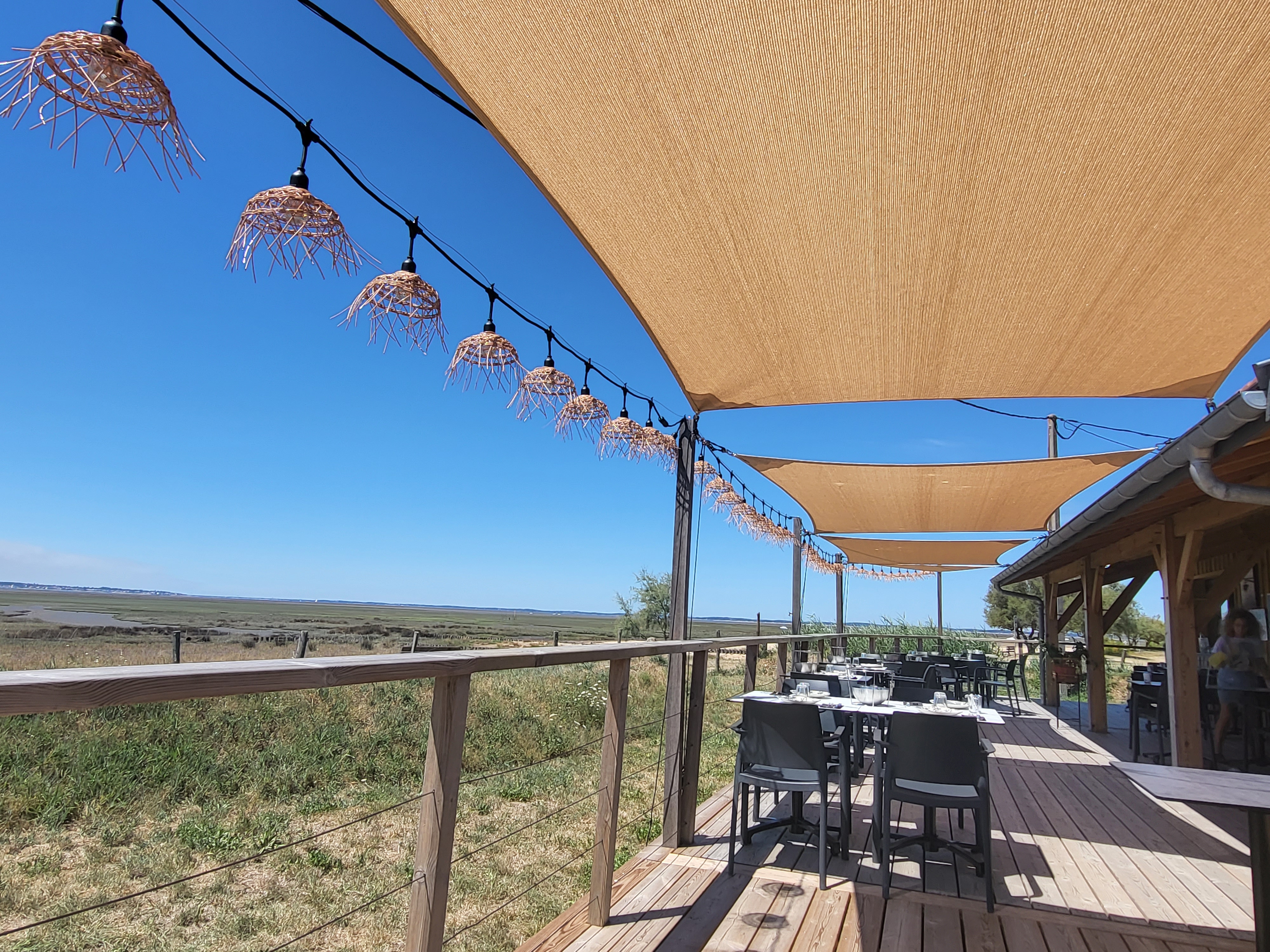 Un moment hors du temps sur la terrasse du SHED. On se retrouve un peu au bout du monde, face à la beauté paisible du Bassin d'Arcachon. Un endroit encore secret qu'on voudrait partager pour leur bien mais qu'on aimerait aussi garder rien que pour nous et nos proches tant il est exceptionnel. Petit plus, leurs huîtres sont délicieuses et leur bonne humeur contagieuse. Allez, j'arrête sinon tout le monde va se passer le mot 🤫