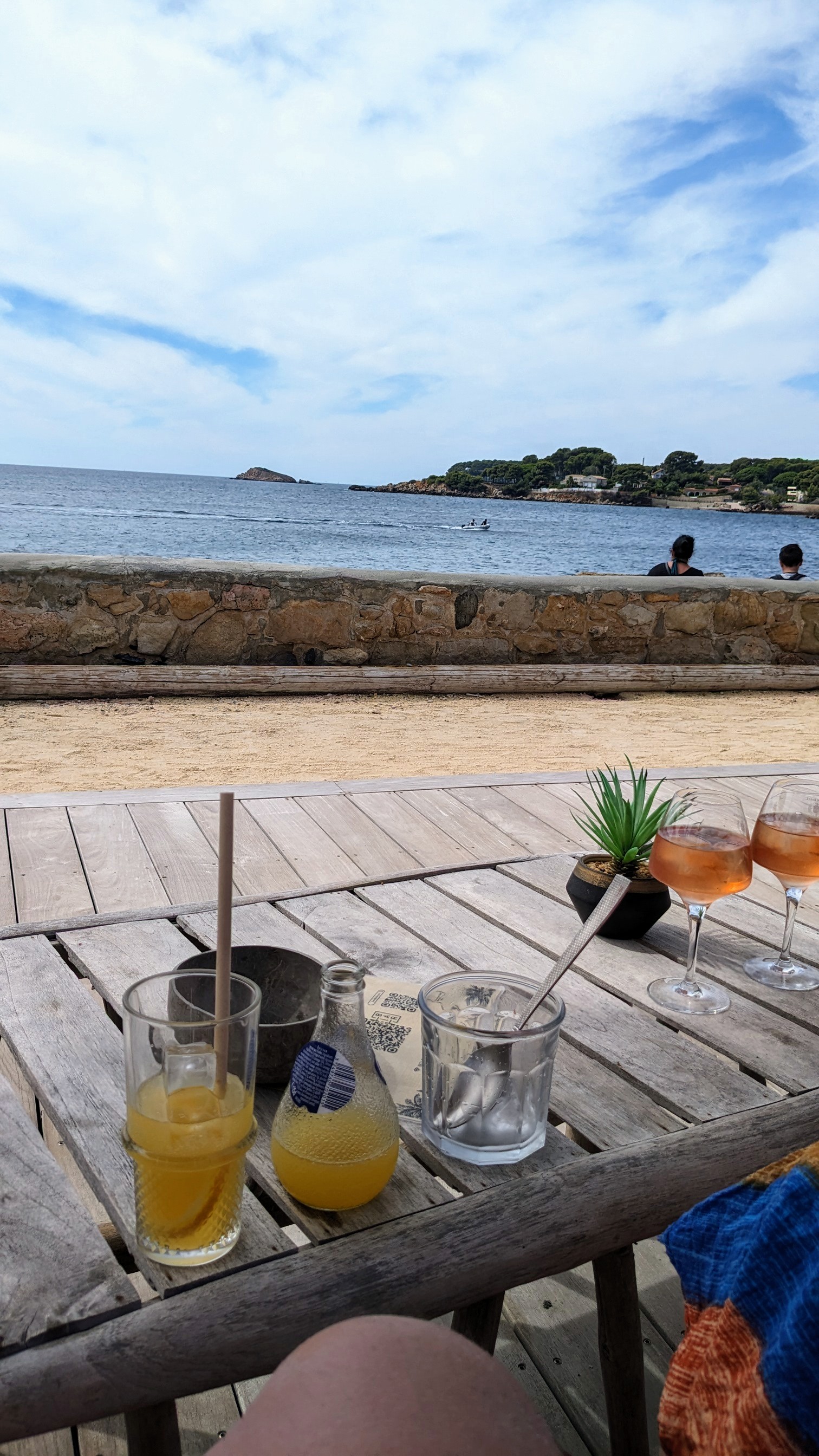 Vue très sympathique !!! A vos scans, il n'y a pas de carte et du coup, 15 euros le Monaco!!!! 9.50 la bière, 5, 5 euros le supplément sirop.....c'est abusé 😂 le spot est sympa mais faut pas exagérer. Même a Monaco on ne paie pas ce prix 🤪 un service de début de saison.