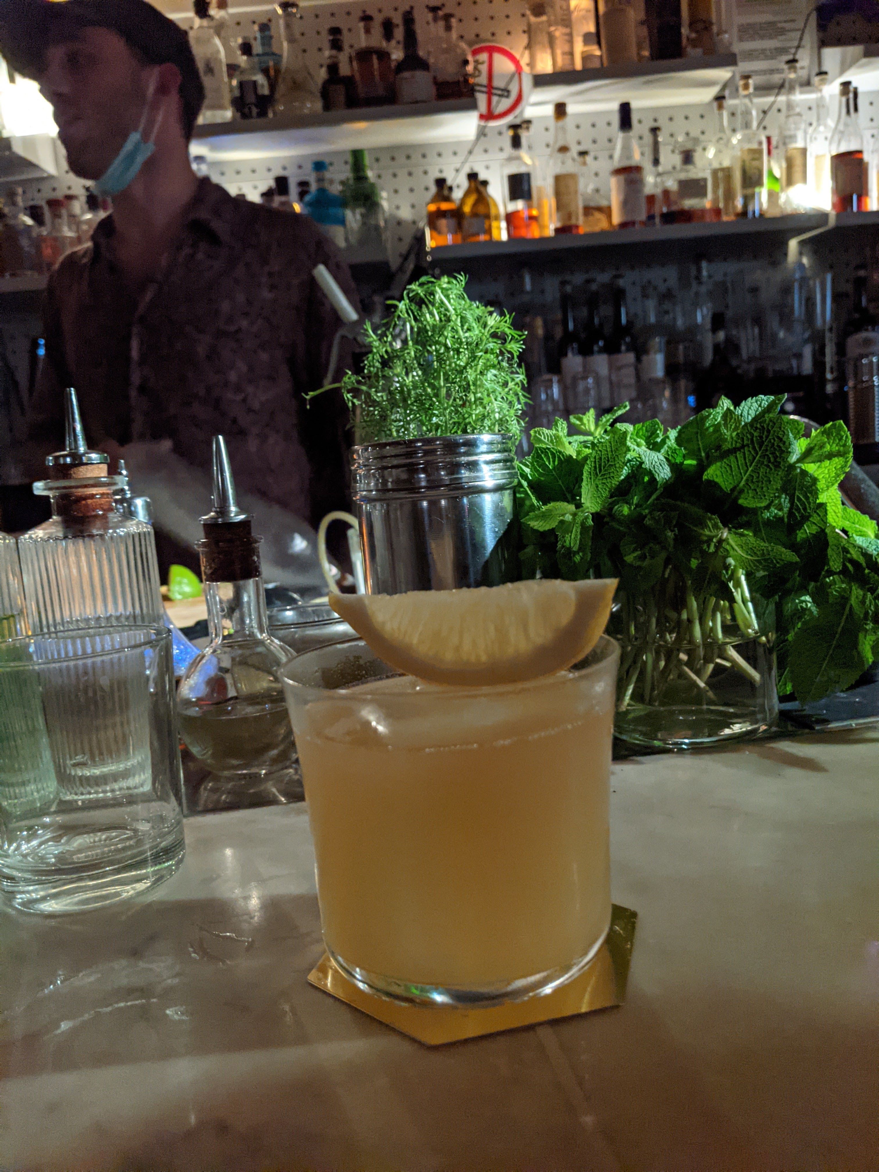 Sans prétention malgré sa réputation, avec un extérieur qui ne laisse pas vraiment entendre que des cocktails basés sur une philosophie précise, etc., sont servis à l'intérieur. Le personnel était très sympathique, détendu mais au top de sa forme. D'une manière ou d'une autre, la musique hip hop, au bon volume, fonctionnait très bien avec l'environnement.