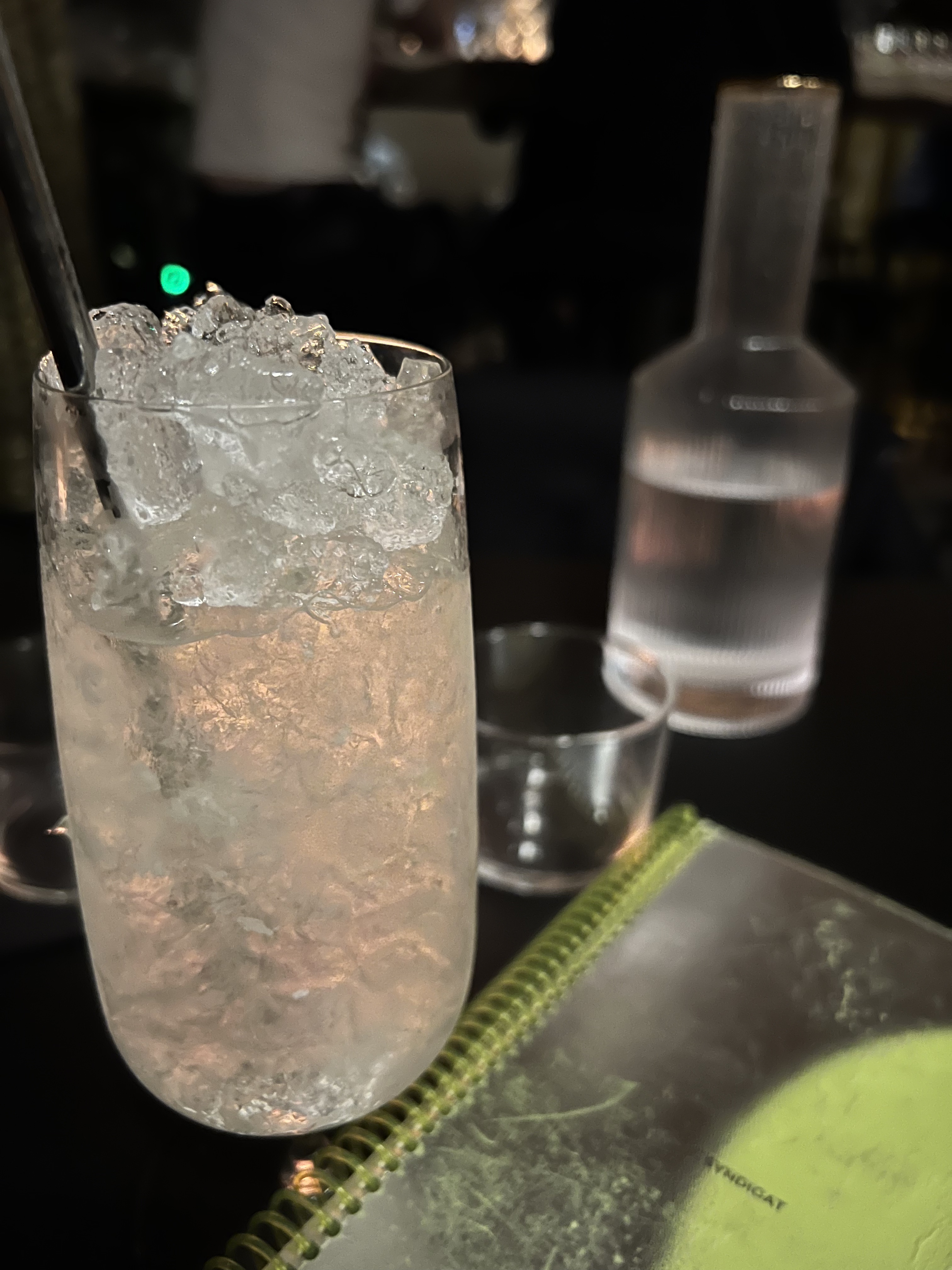 Visite du Syndicat en raison de sa réputation! Arrivés puis installés au bar, un verre d’eau nous a directement été servi, cocktails intéressants et bons, barmans aux petits oignons. On a vite été à l’aise, ambiance chaleureuse, musique sympa enfin parfait! Je recommande vivement.