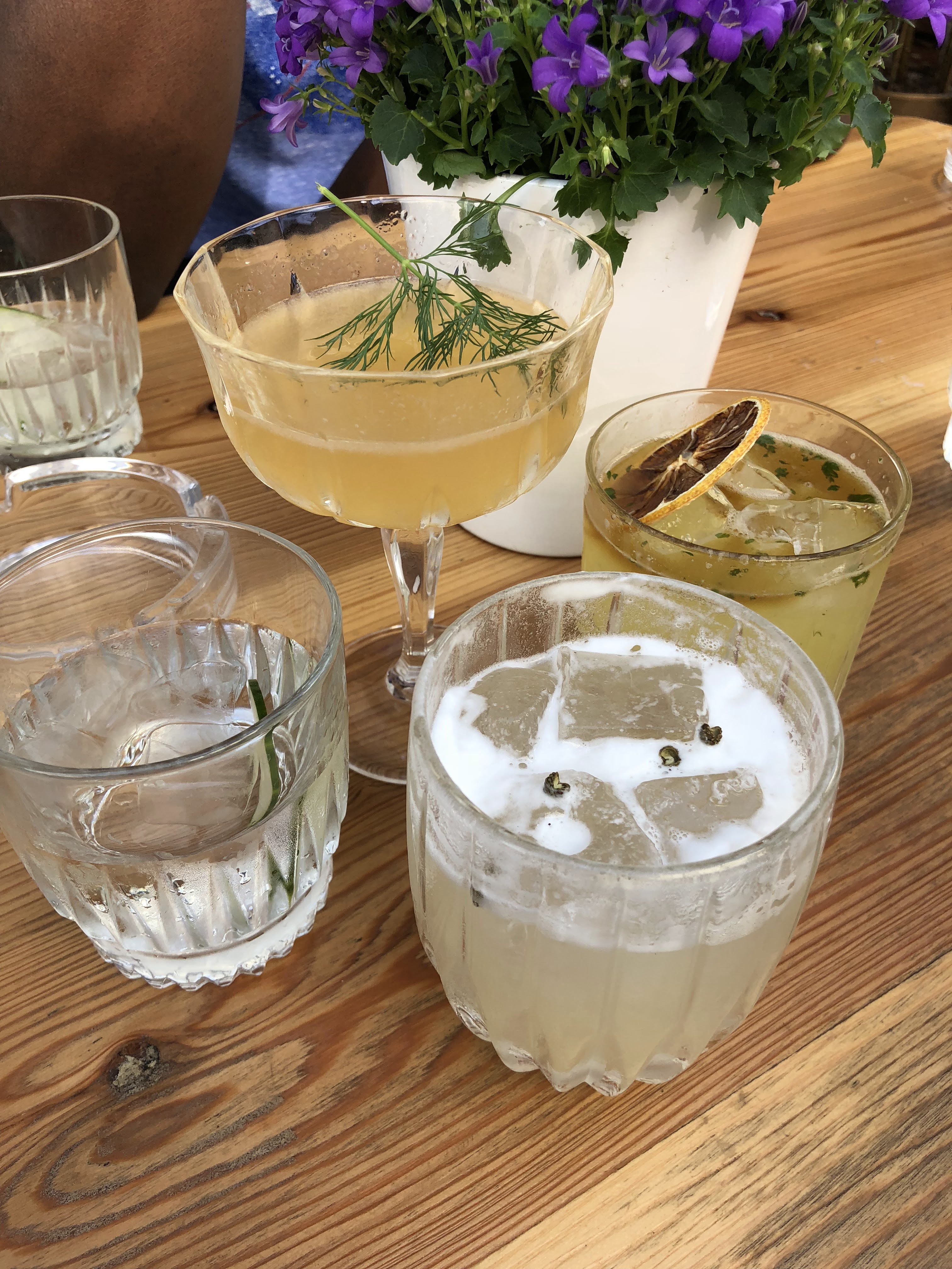 Quartier super animé, personnel adorable qui a recommandé 3 bons cocktails + un peu d'eau de concombre en accompagnement. J'adorerais revenir :)