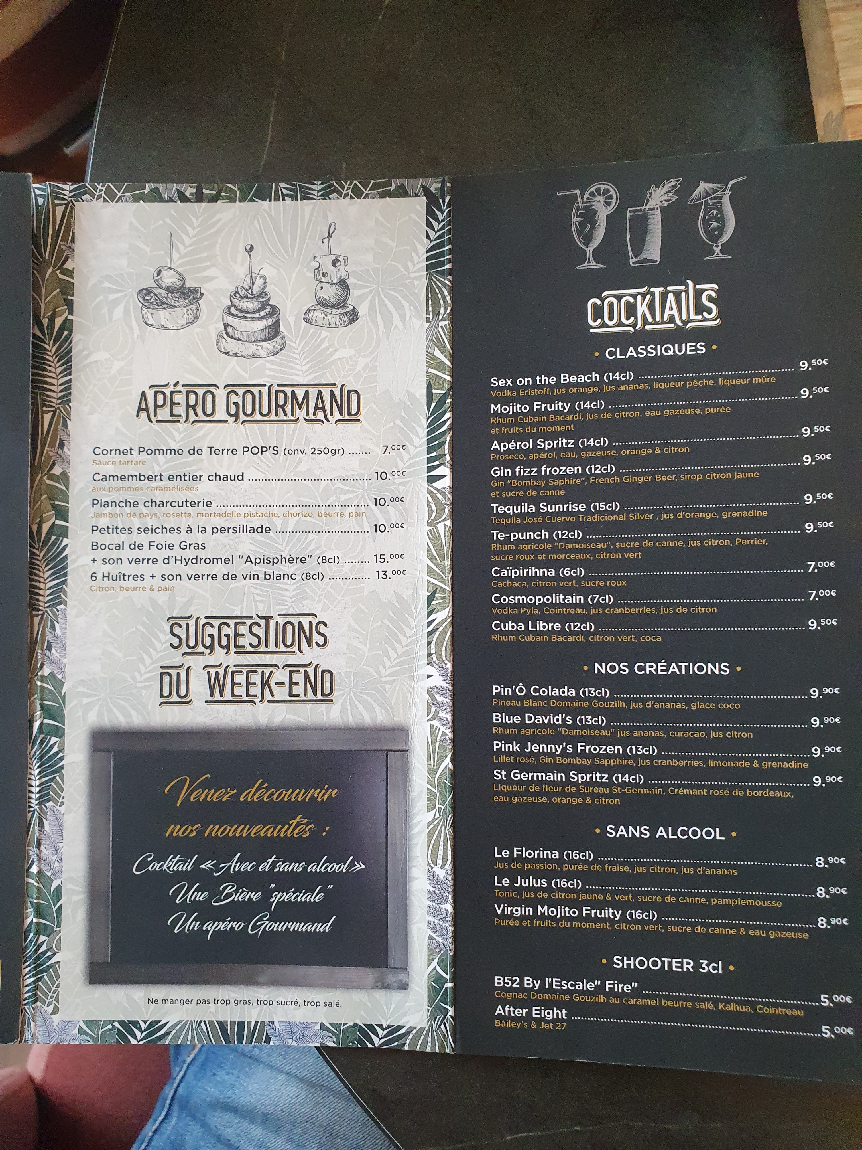 Le retour de l'escale, bar mythique à La Roche Chalais. Et c'est la meilleure version du bar que celle ci. Bons cocktails copieux, planches sympa. Venez. Carte en photo ci dessous