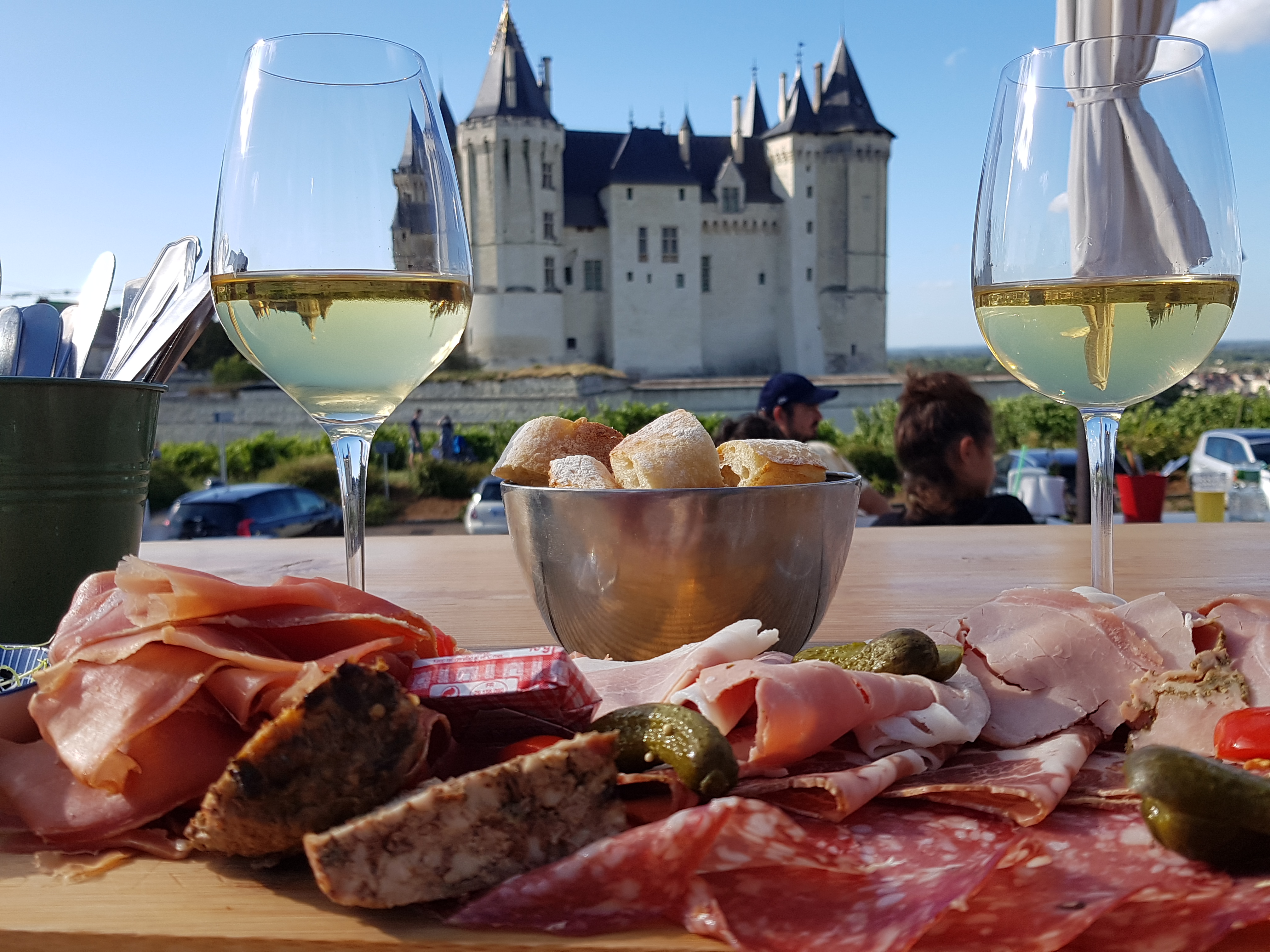 Vue splendide sur le château de Saumur, accompagné de bon vin et de gourmandises à déguster...un apéritif de carte postale !