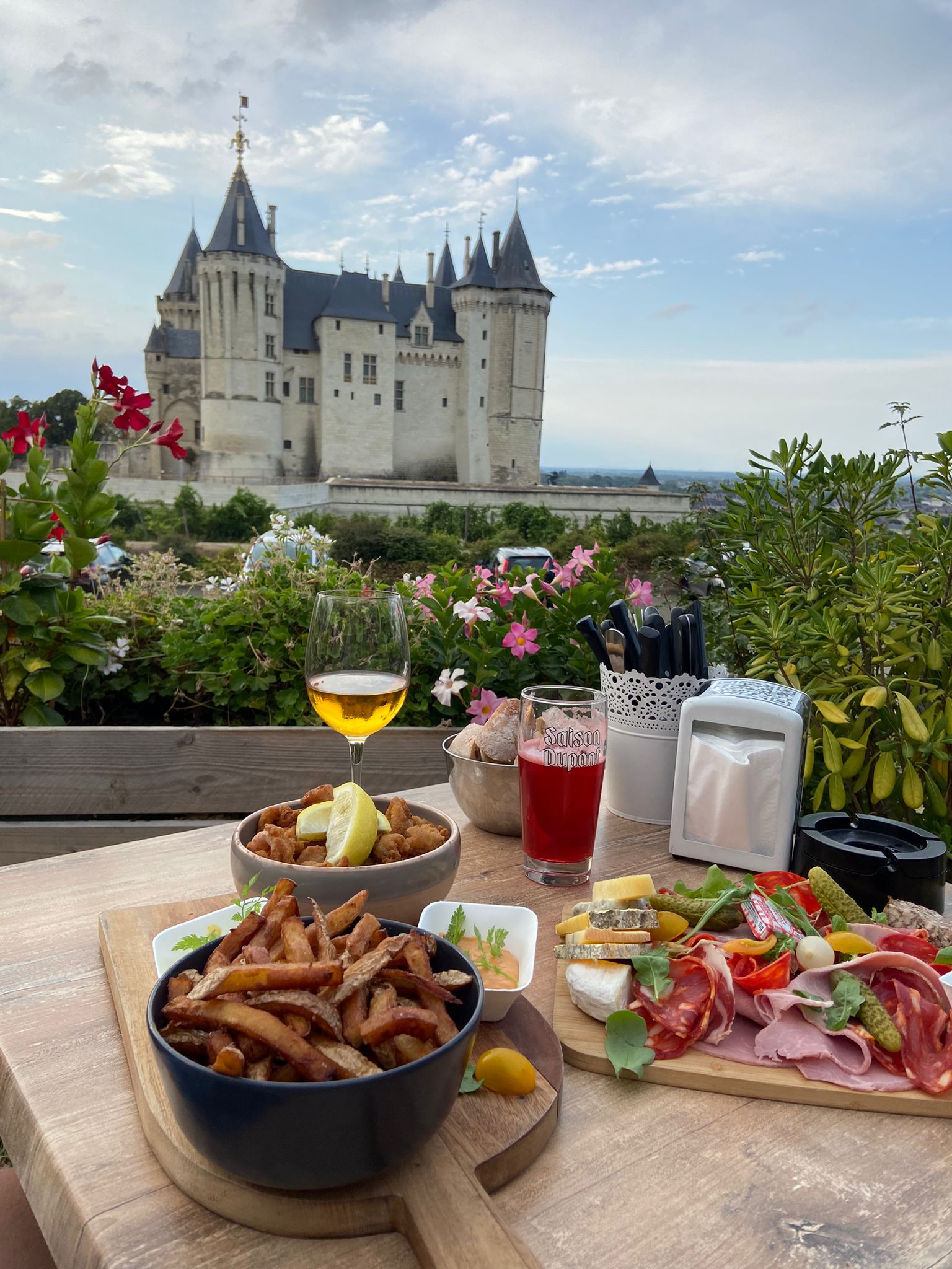 Un endroit convivial pour prendre l’apéritif et grignoter des frites maison avec une agréable vue sur le château de Saumur.