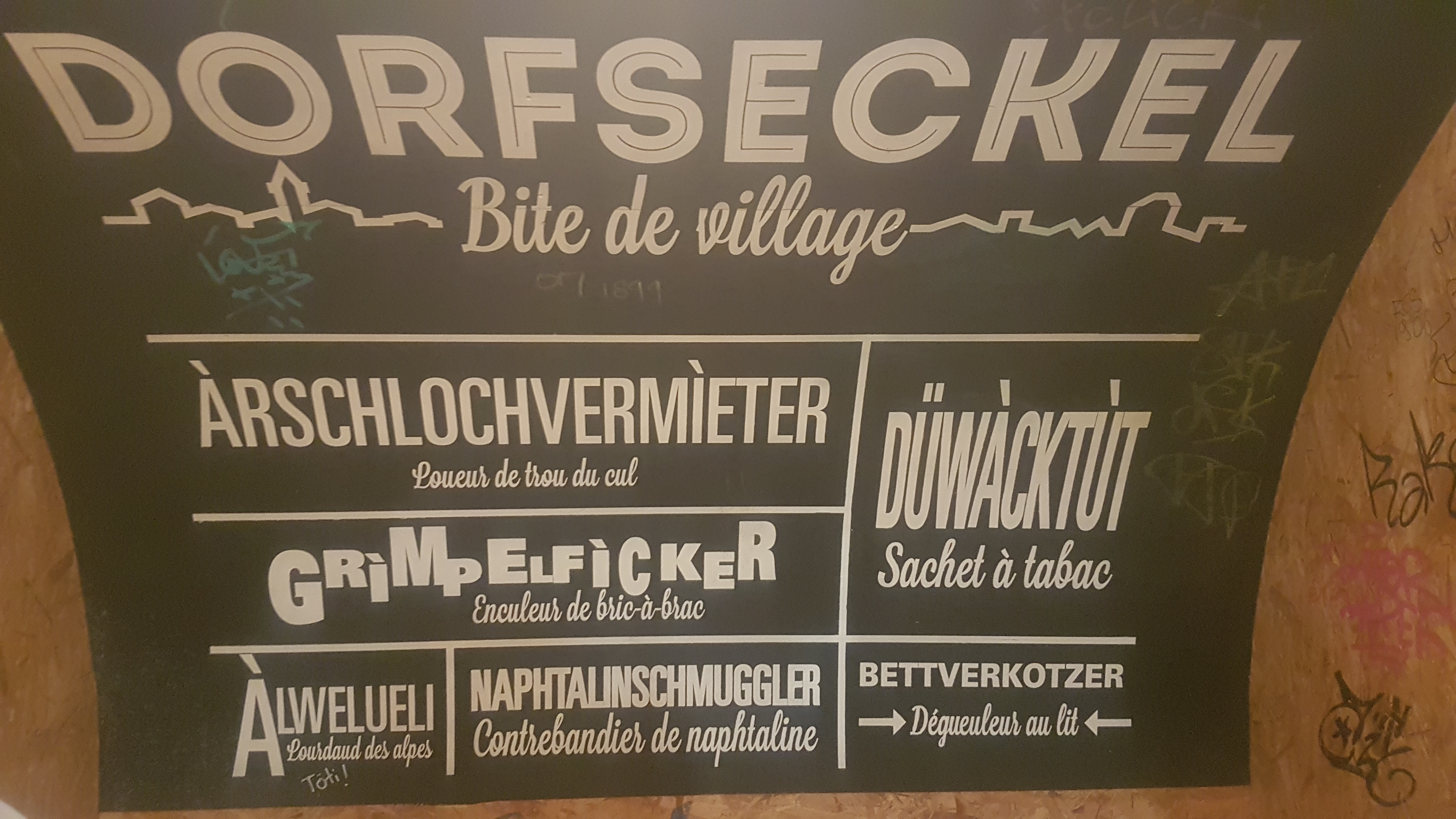 Agréable endroit à la décoration tutti fruti mais très couleur locale. Service efficace, grand choix de bières et cuisine en continu bien utile quand on souhaite simplement partager une bonne tarte flambée.