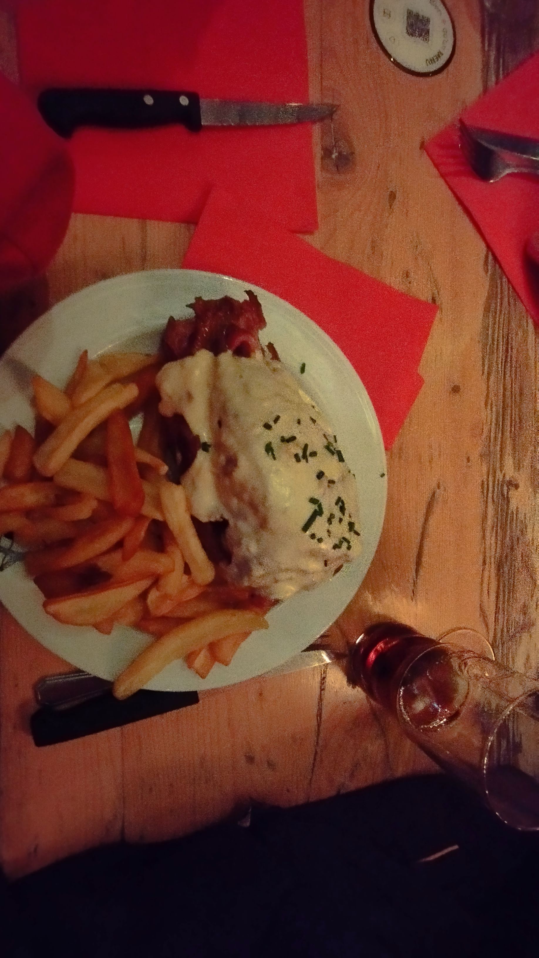 Très bon rapport qualité prix. Le cadre est sympa, la déco est chaleureuse, à la roots. Le service était qualitatif, et surtout très gentils :) Concernant les plats, nous avons pris le Burger Cheese Bacon et la Tarte Flambée au Munster. La flamme était simple mais efficace, bonne pâte, pour le prix c’est très honnête. Le Burger était assez dur à manger car disproportionné, mais avec des couverts c’était amplement faisable. Le steak était très bon, le cheddar aussi, et les frites très sympas. Un peu chère mais quand on voit la qualité du steak, le prix peut être excusé.