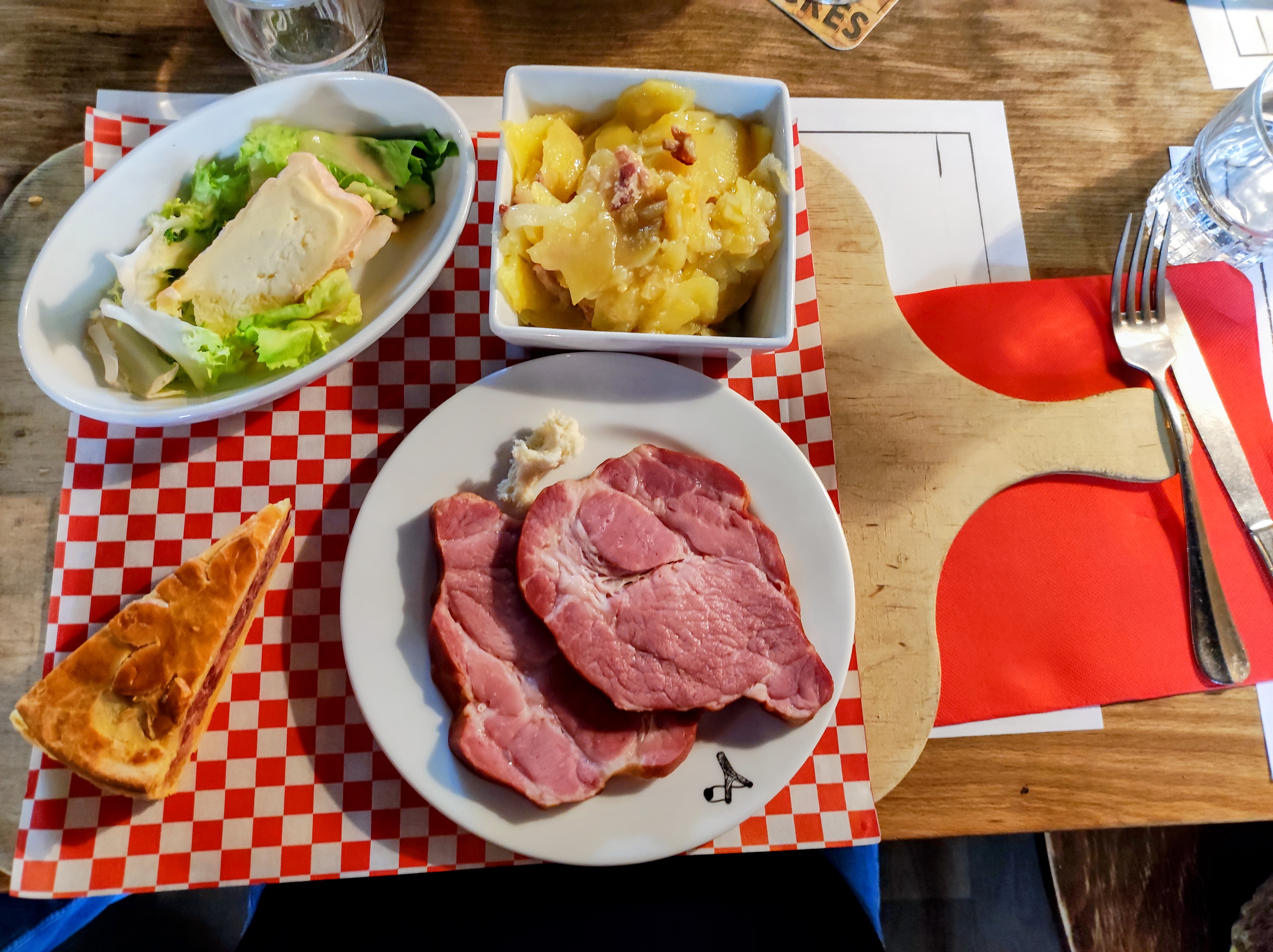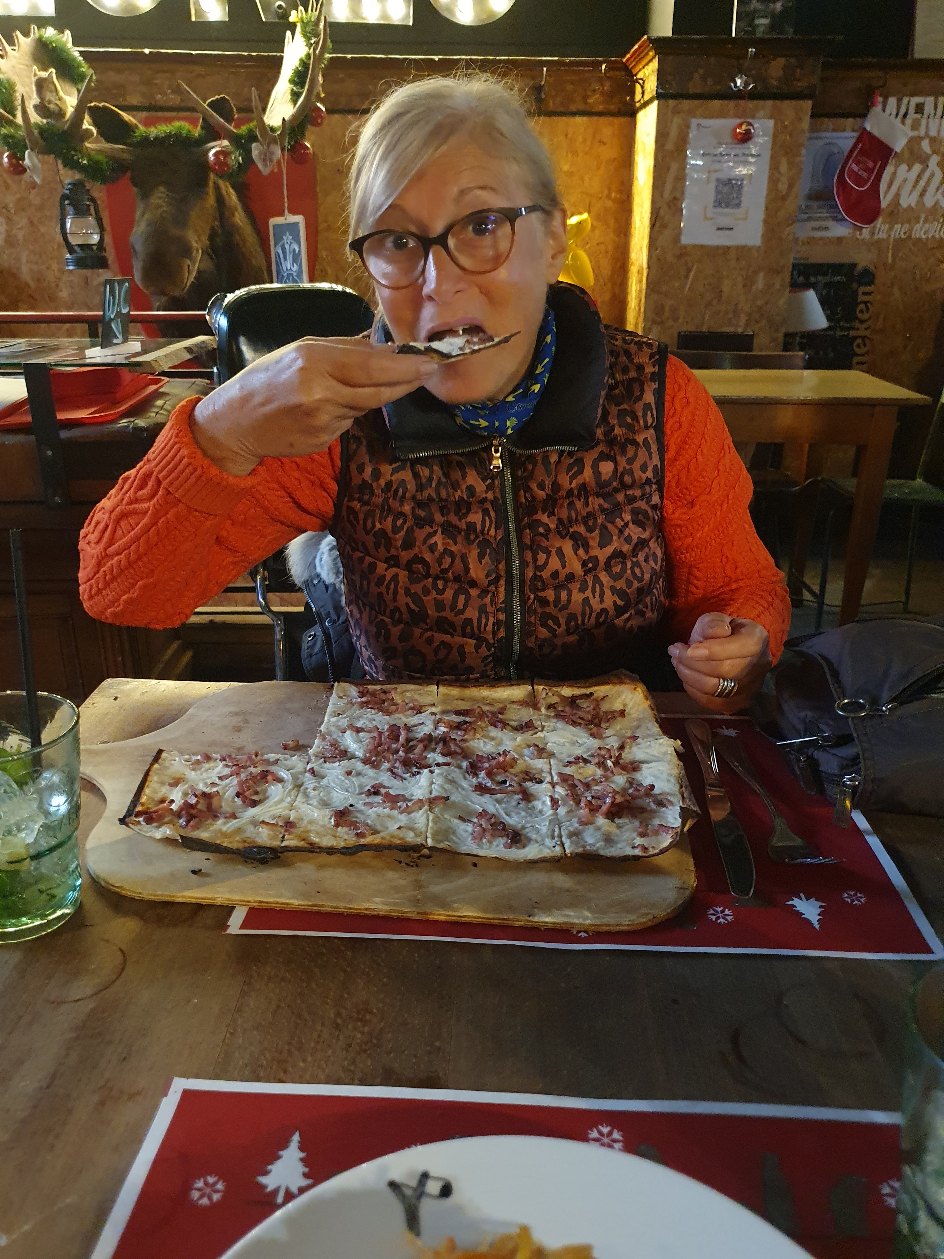 Accueil chaleureux, 2 plats commandés a partager avec ma copine: Flamenkesh découvert et waedele au munster. Ok c'est pas diet mais ça en valait le coup.