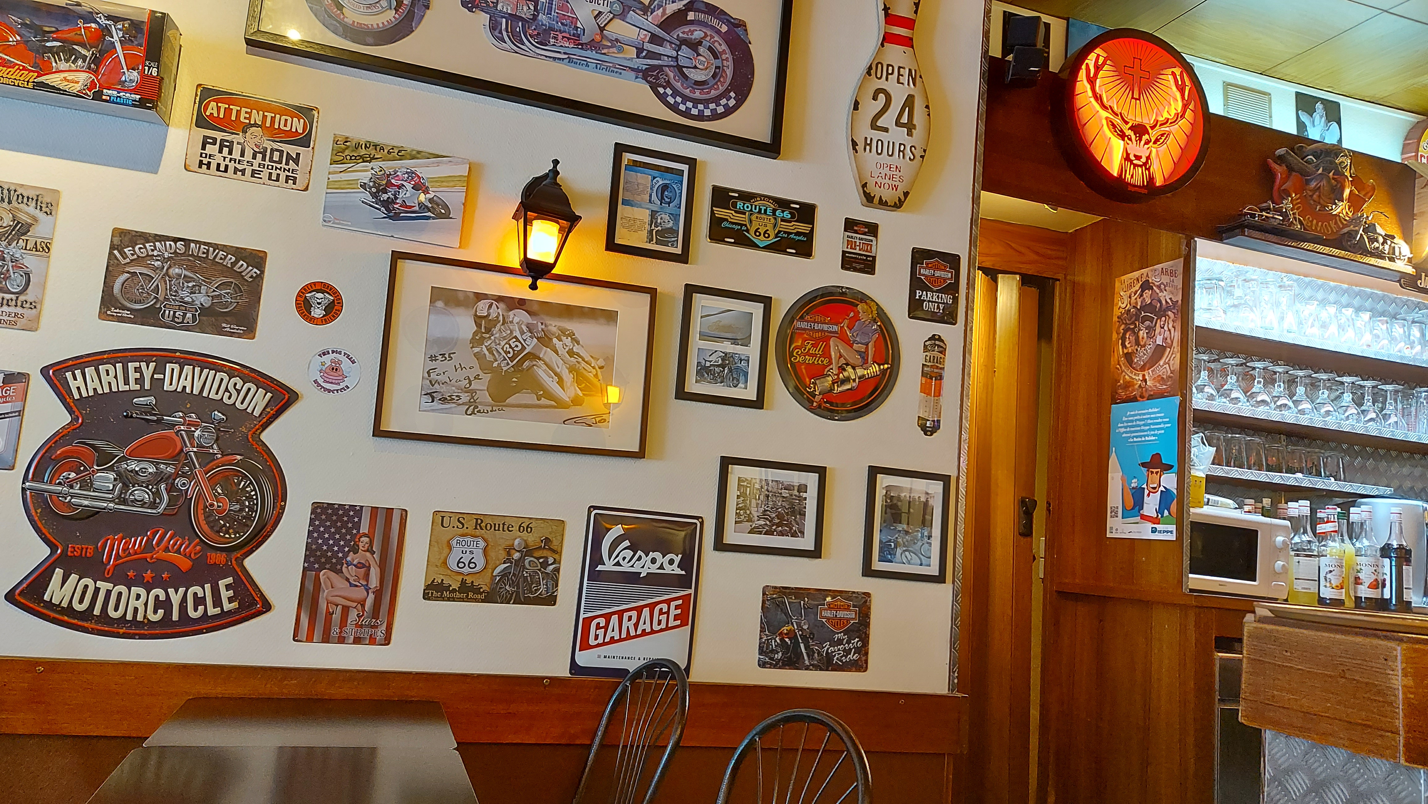 Ambiance sympa. Patron cordial. Belle déco vintage Rendez-vous de motards