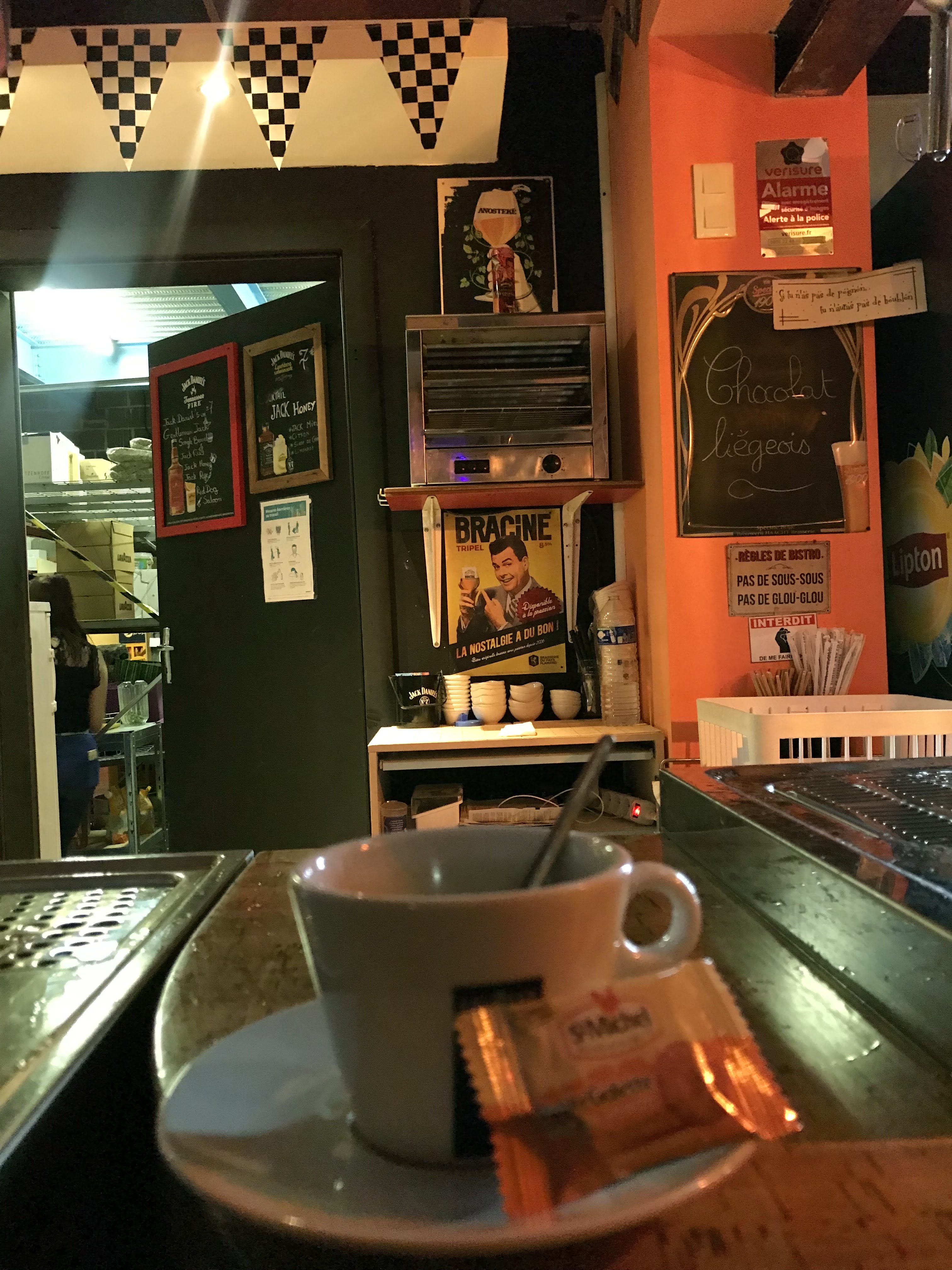 Une ambiance à part : café, salon de tatouage, friperie, le tout dans une ambiance années 60. Clientèle 5ypee motard/rock mais j y vais sans à priori et je ne me fais pas dévisager. Au contraire, j y retrouve l ambiance bistro et la bière est moins chère que sur la grand place.
