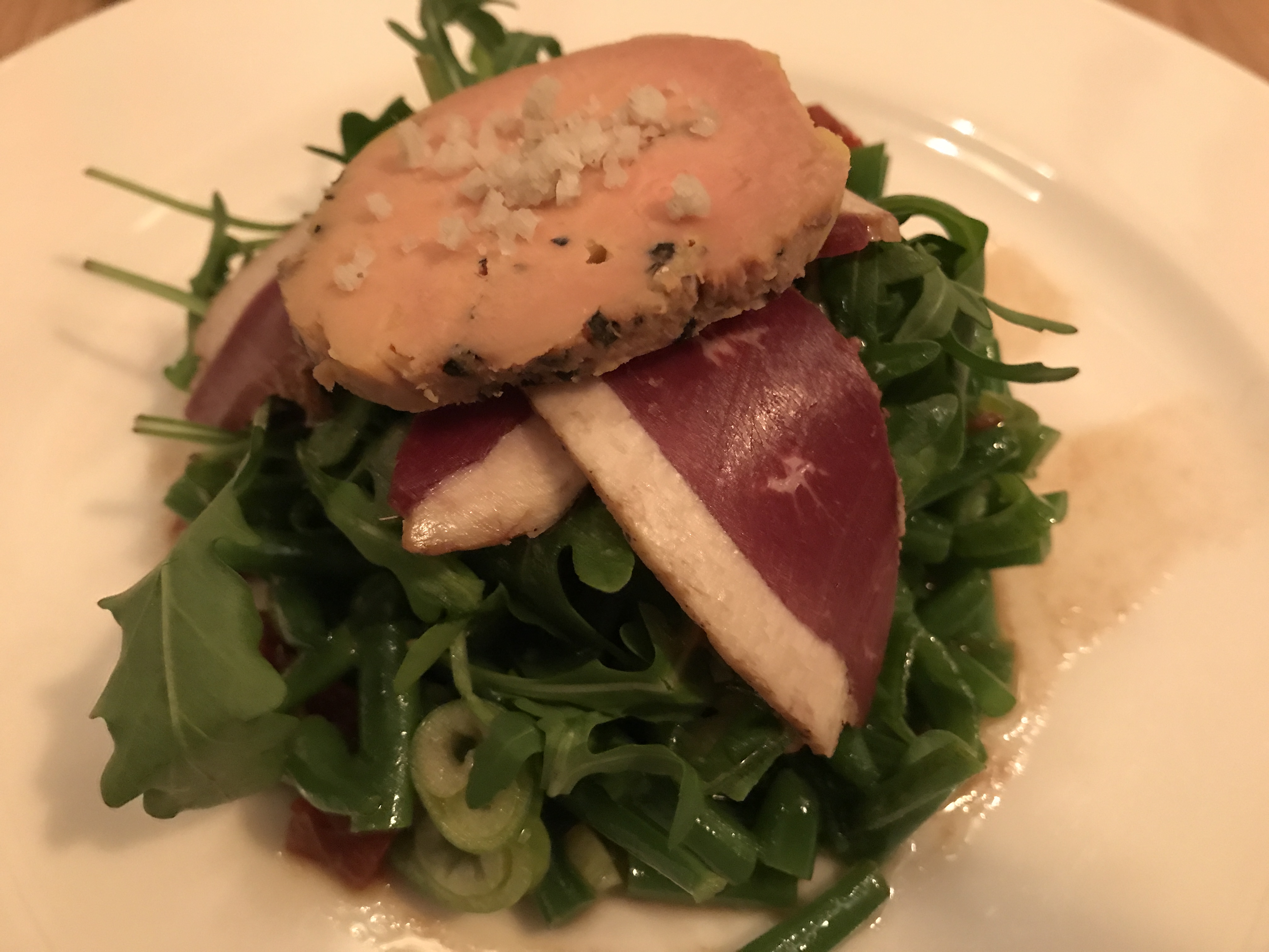 La nourriture, le service, la carte des vins et l'ambiance sont tous fabuleux. Nous avons dégusté une bouteille d'un merveilleux Cab Franc, probablement le meilleur que nous ayons jamais mangé, pour 38 euros. En plus de leur menu à la carte, ils ont un menu à prix fixe à 39 euros par personne, et nous en avons profité pour déguster la salade de melon ainsi que l'entrée aux crevettes, nous avons tous les deux pris le steak, qui était parfaitement préparé, et le dessert aux noisettes, c'était une excellente fin de repas.