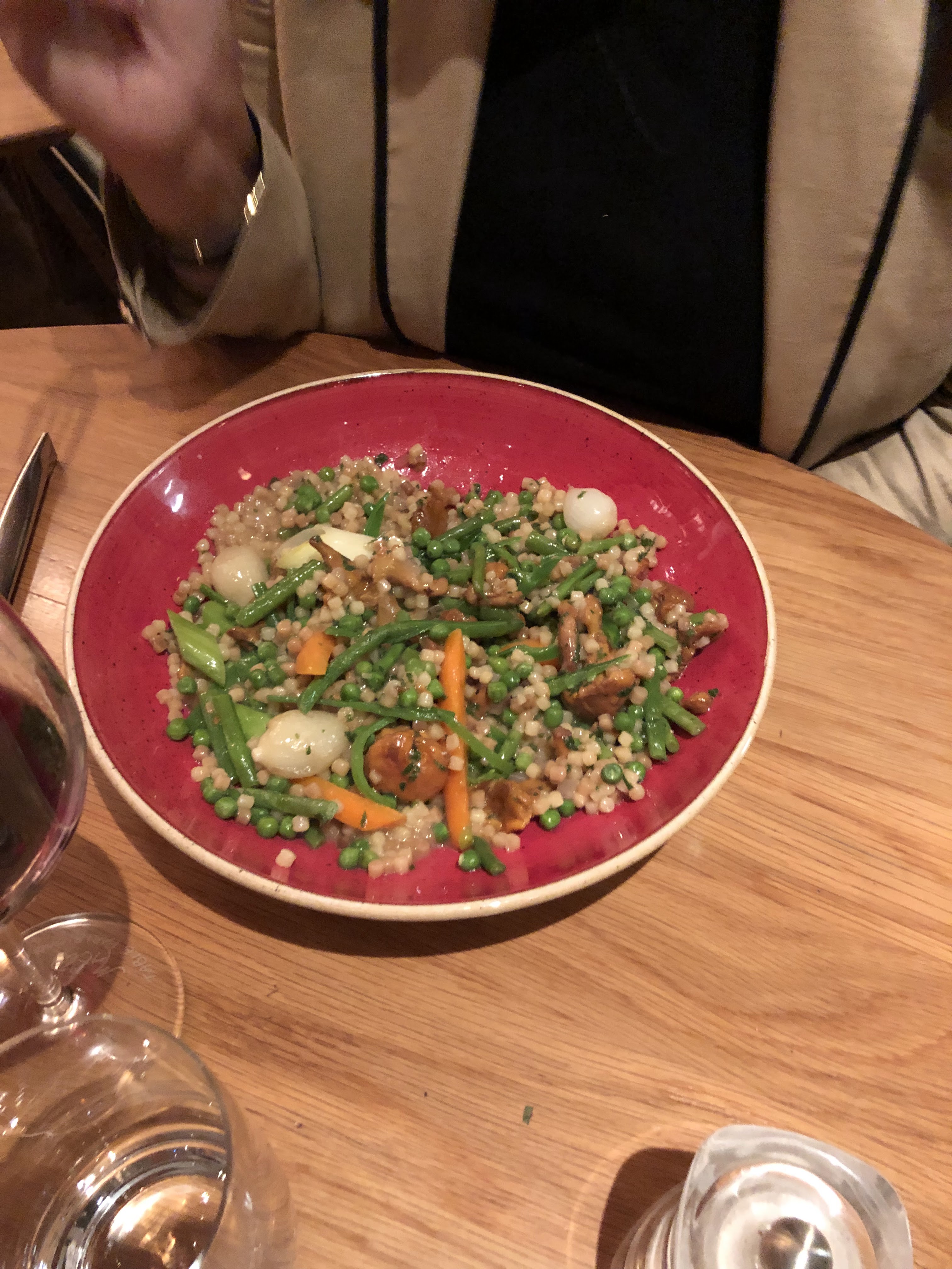 Repas fantastique. Bar confortable avec du bon vin. Mon agneau au couscous et glaçage à l'abricot était excellent.