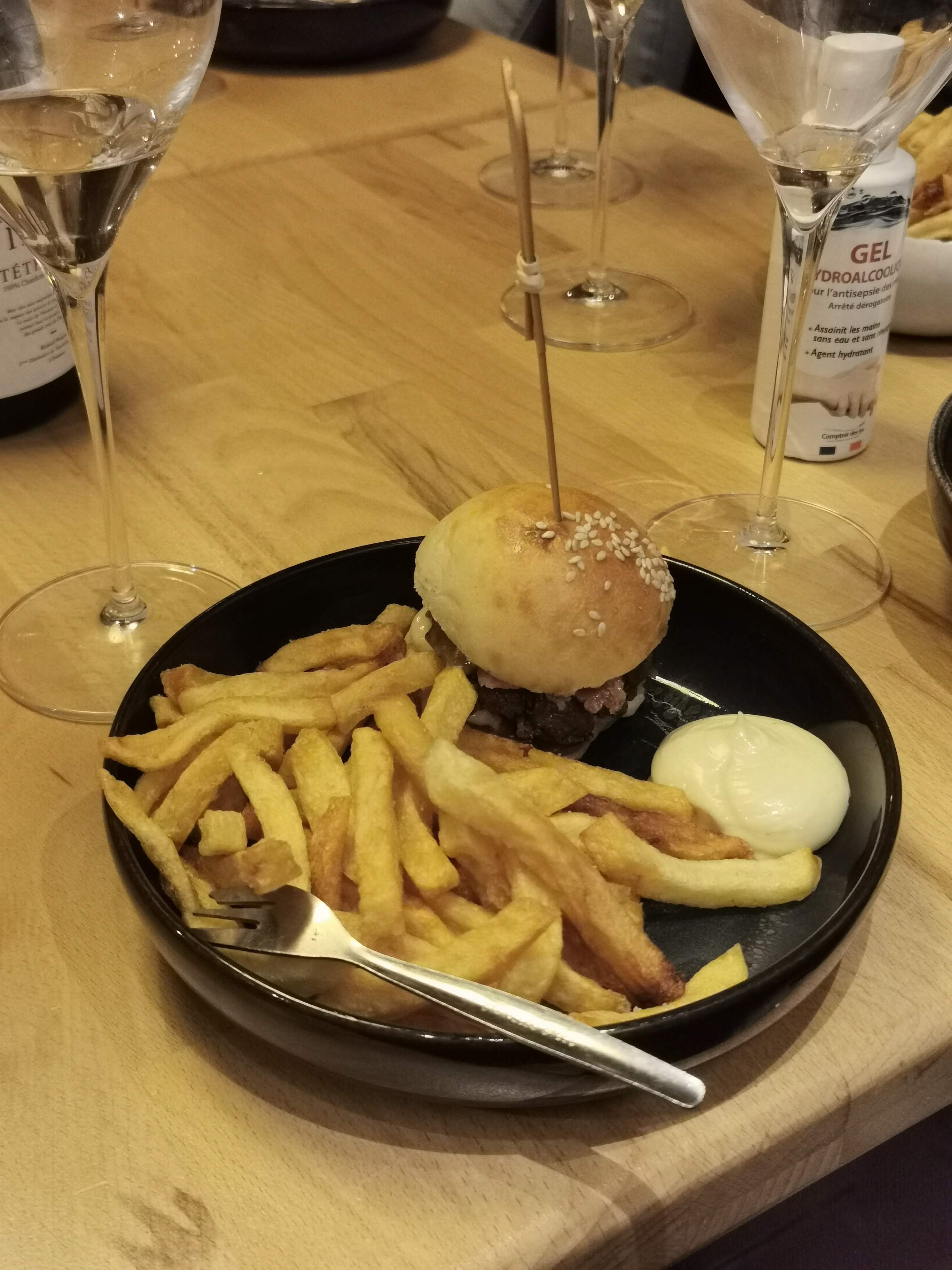Bon vin, mini-burgers fabuleux et service très sympathique.